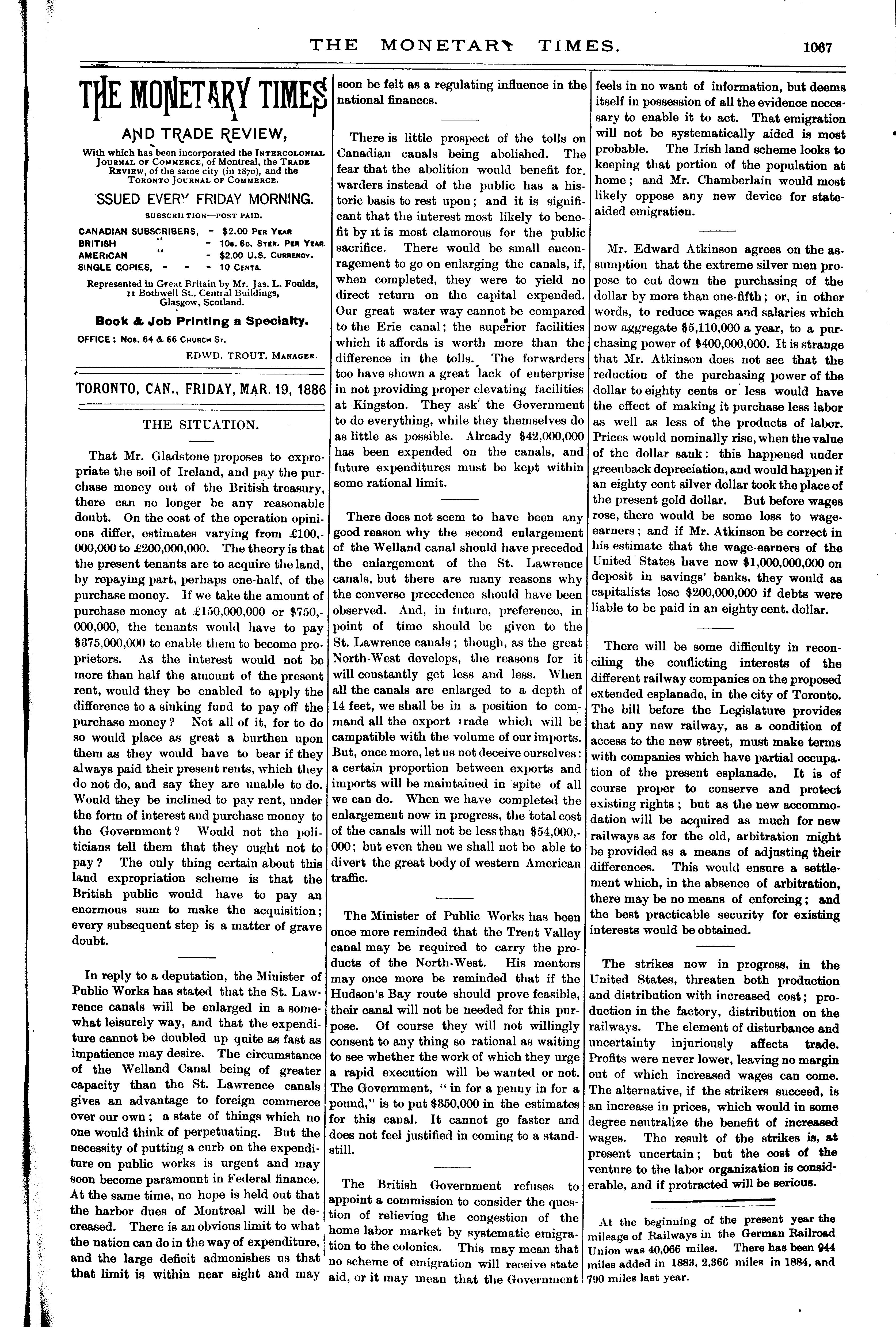 The monetary times, trade review and insurance chronicle : [Vol. 19, no. 38 (Mar. 19, 1886)]