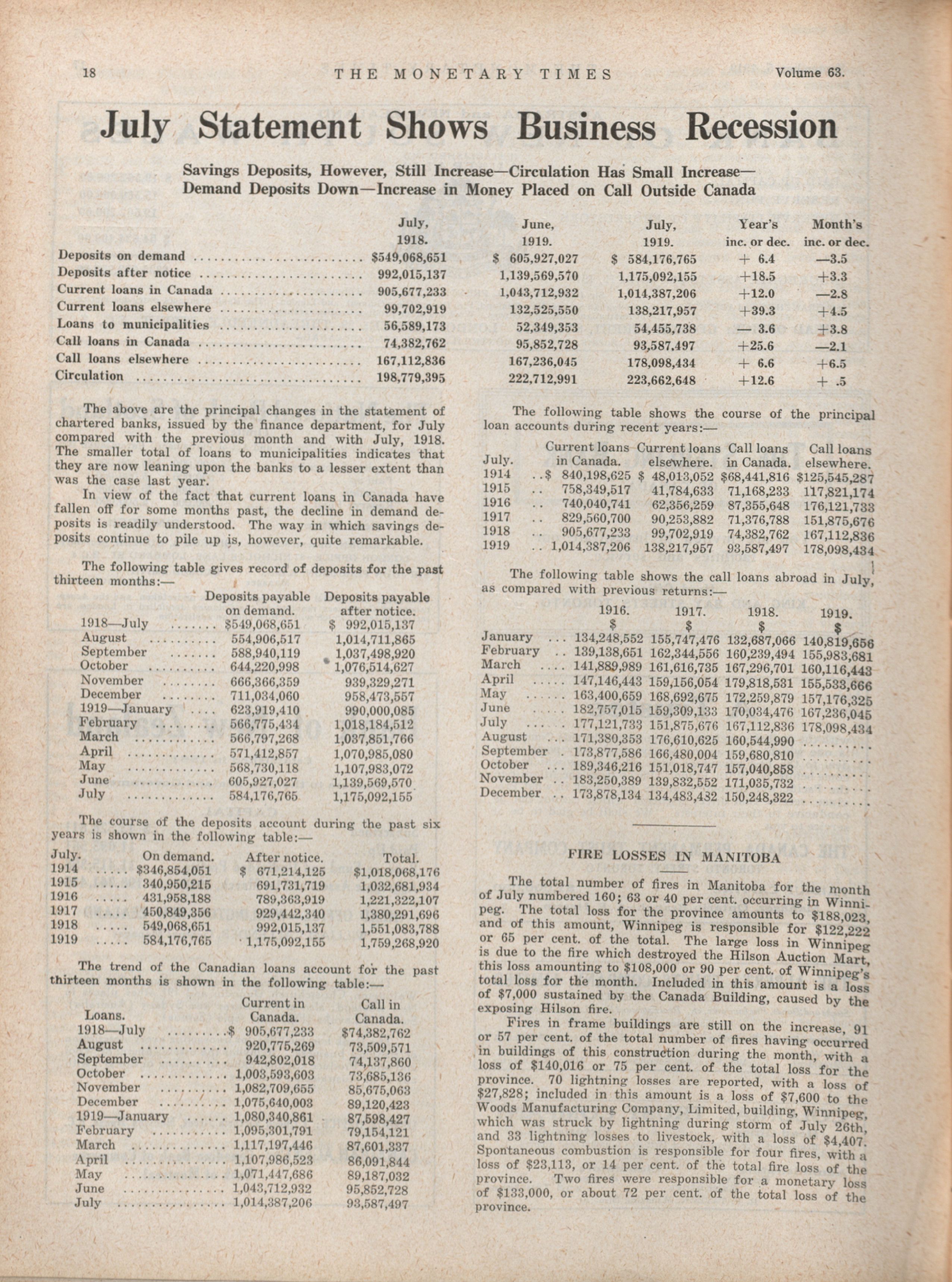 The Monetary Times, trade review and insurance chronicle. : Volume 63 No. 10 (September 5, 1919)