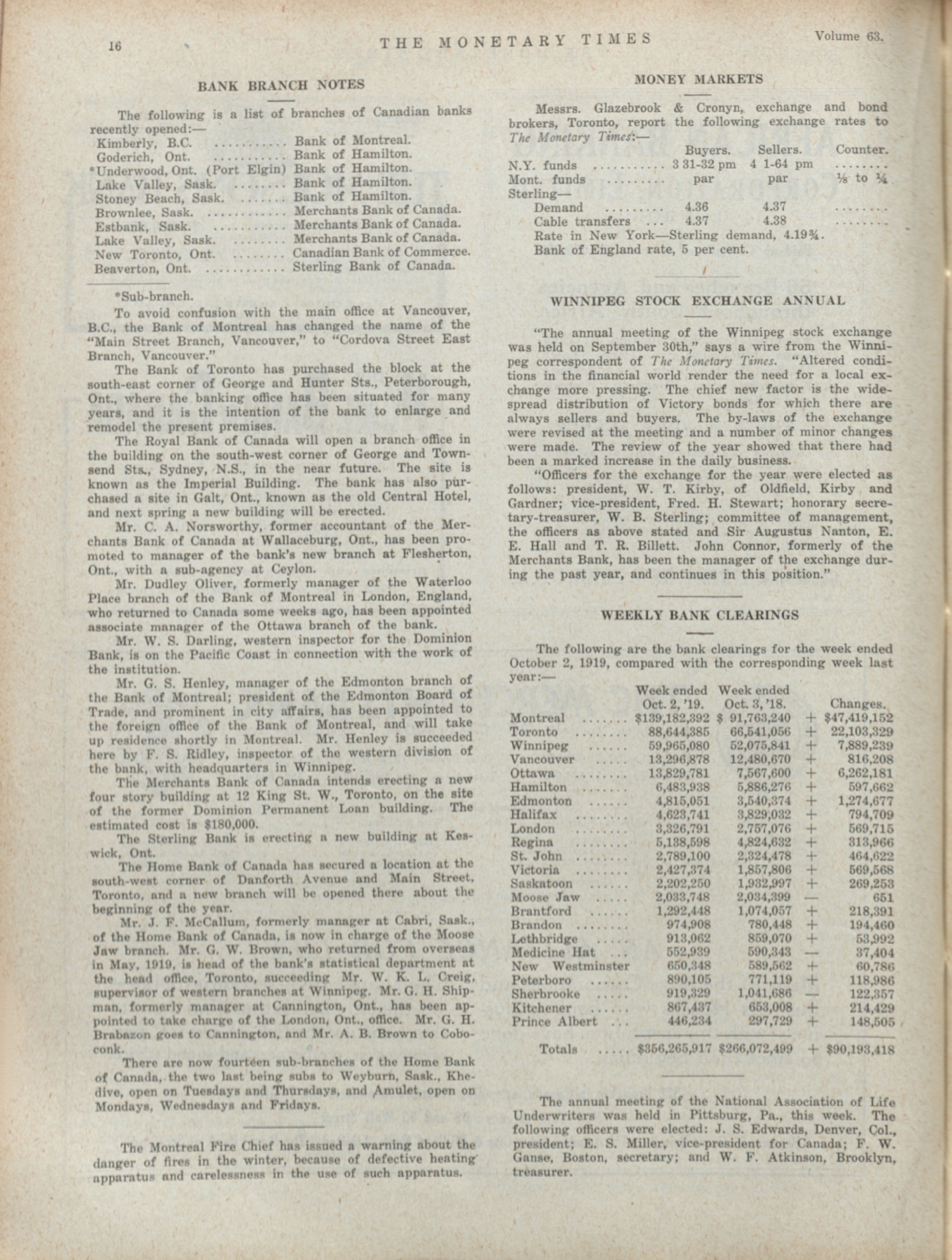 - The Monetary Times, trade review and insurance chronicle. : Volume 63 No. 14 (October 3, 1919)