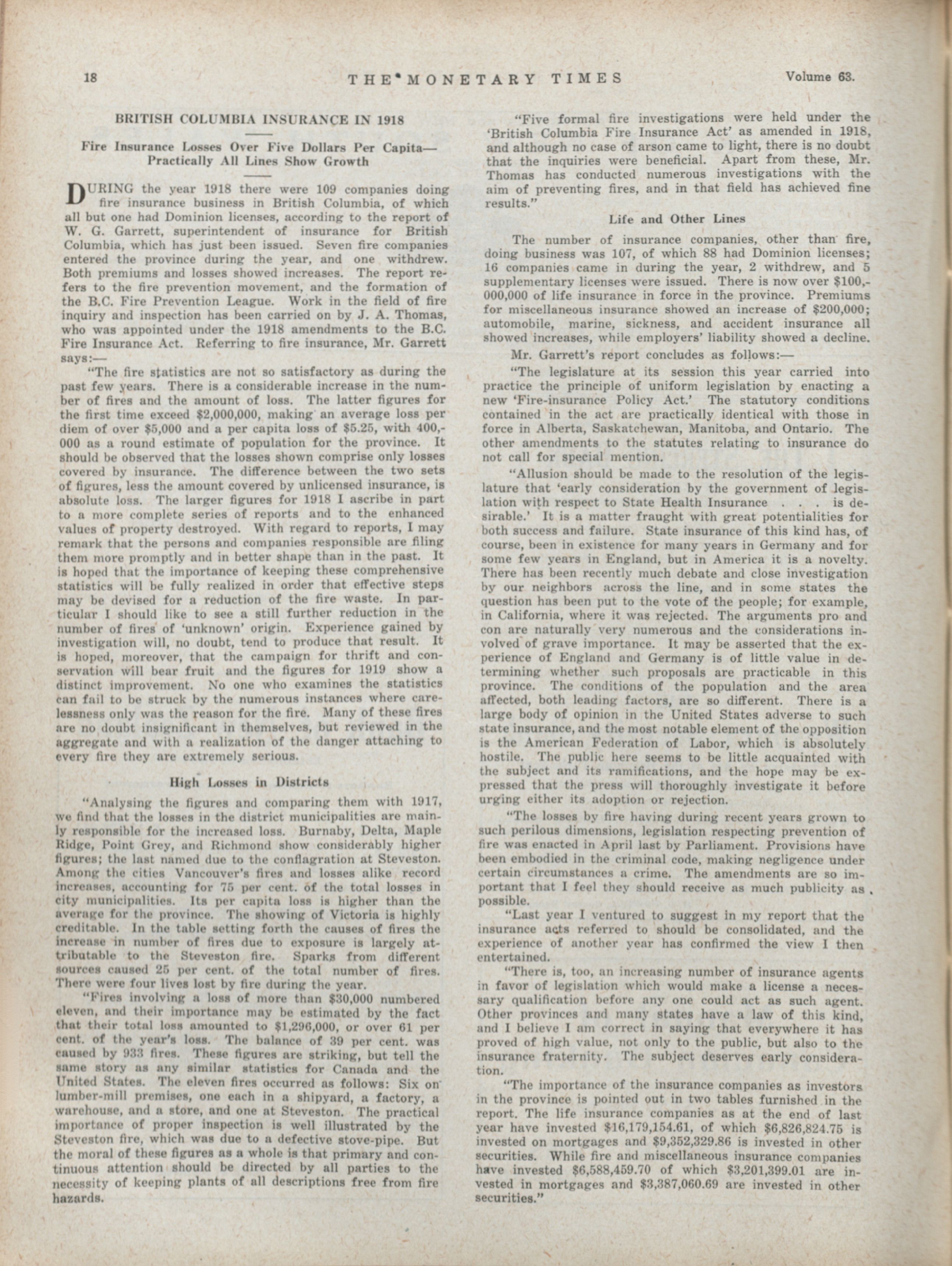 - The Monetary Times, trade review and insurance chronicle. : Volume 63 No. 16 (October 17, 1919)