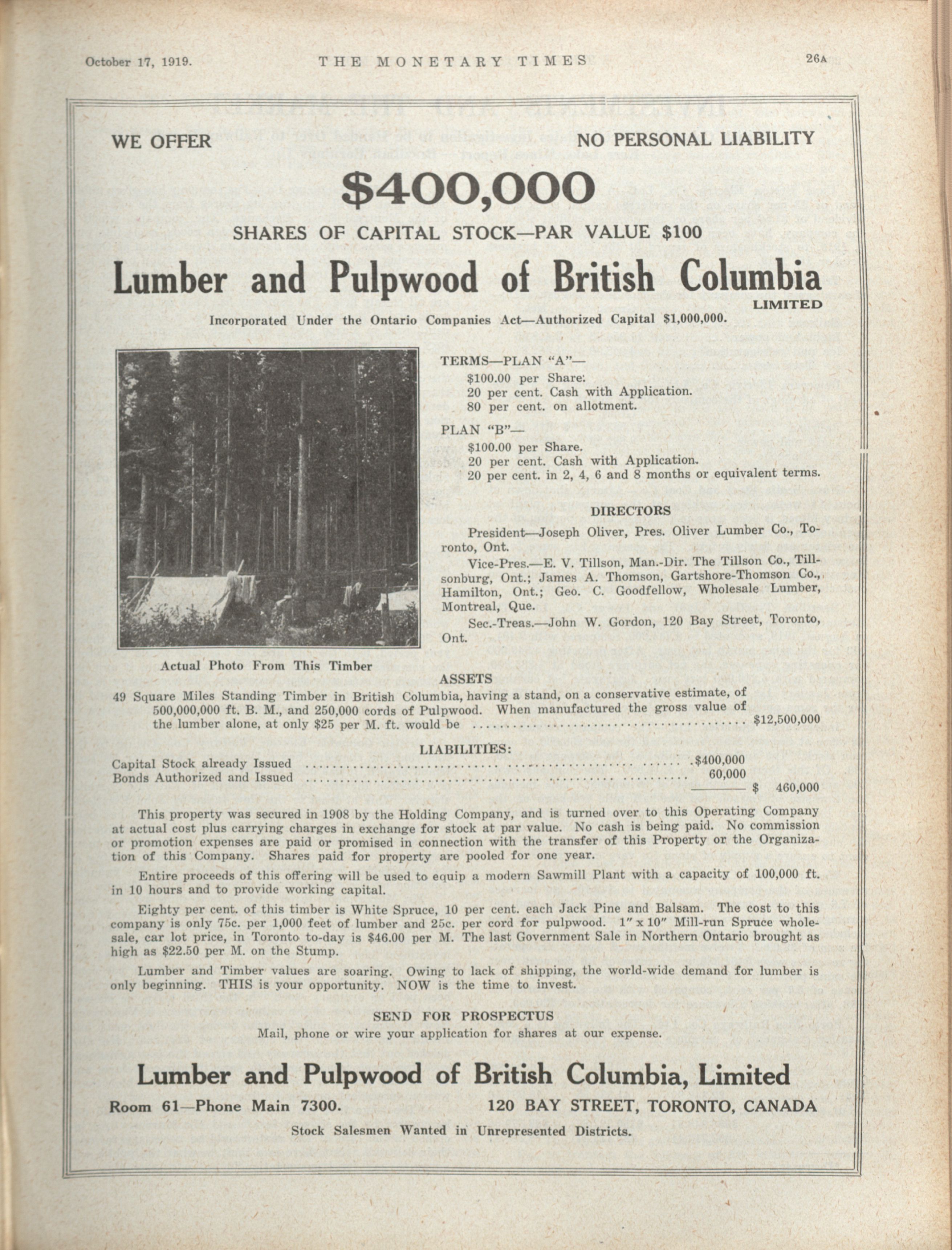 - The Monetary Times, trade review and insurance chronicle. : Volume 63 No. 16 (October 17, 1919)