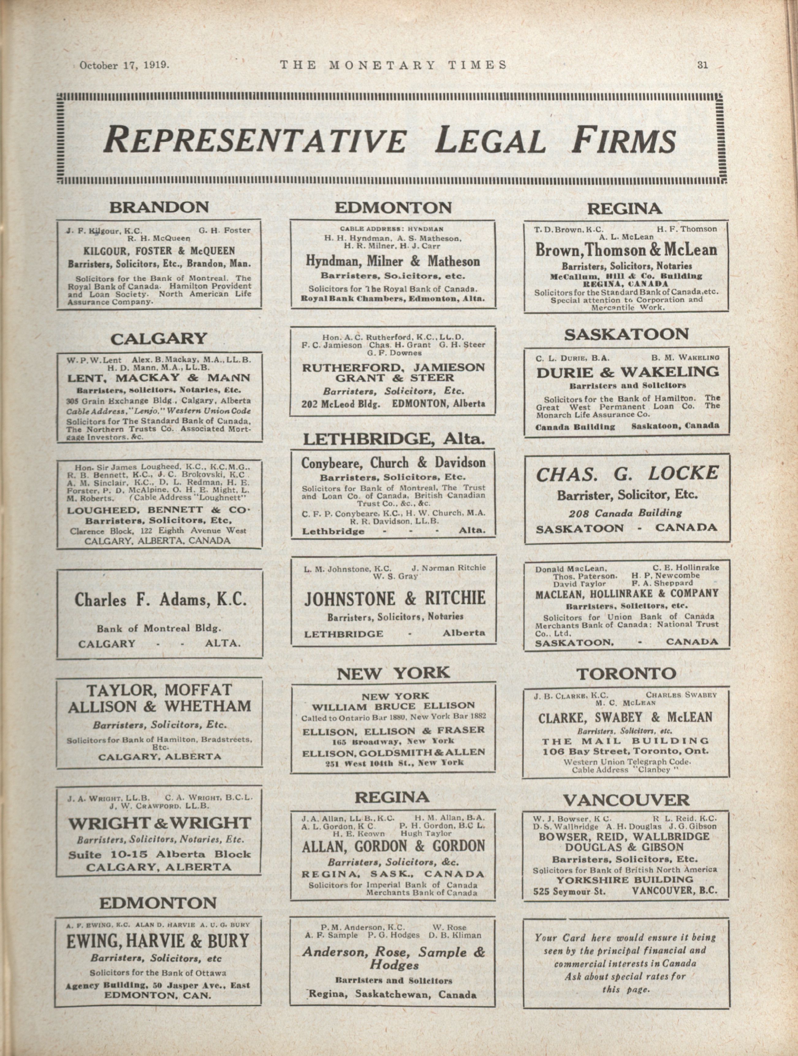 The monetary times, trade review and insurance chronicle : Volume 63 No. 16 (October 17, 1919)