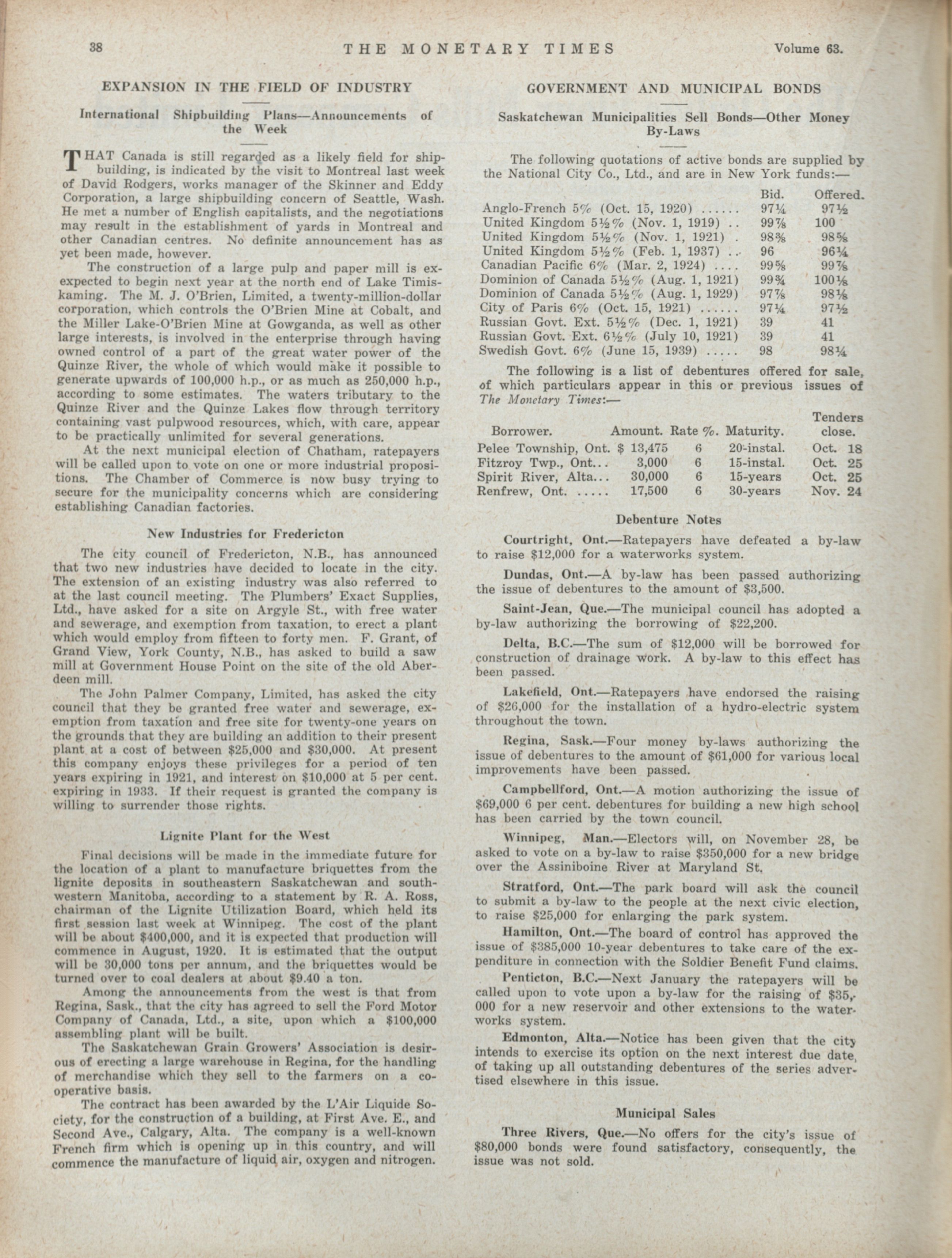 - The Monetary Times, trade review and insurance chronicle. : Volume 63 No. 16 (October 17, 1919)