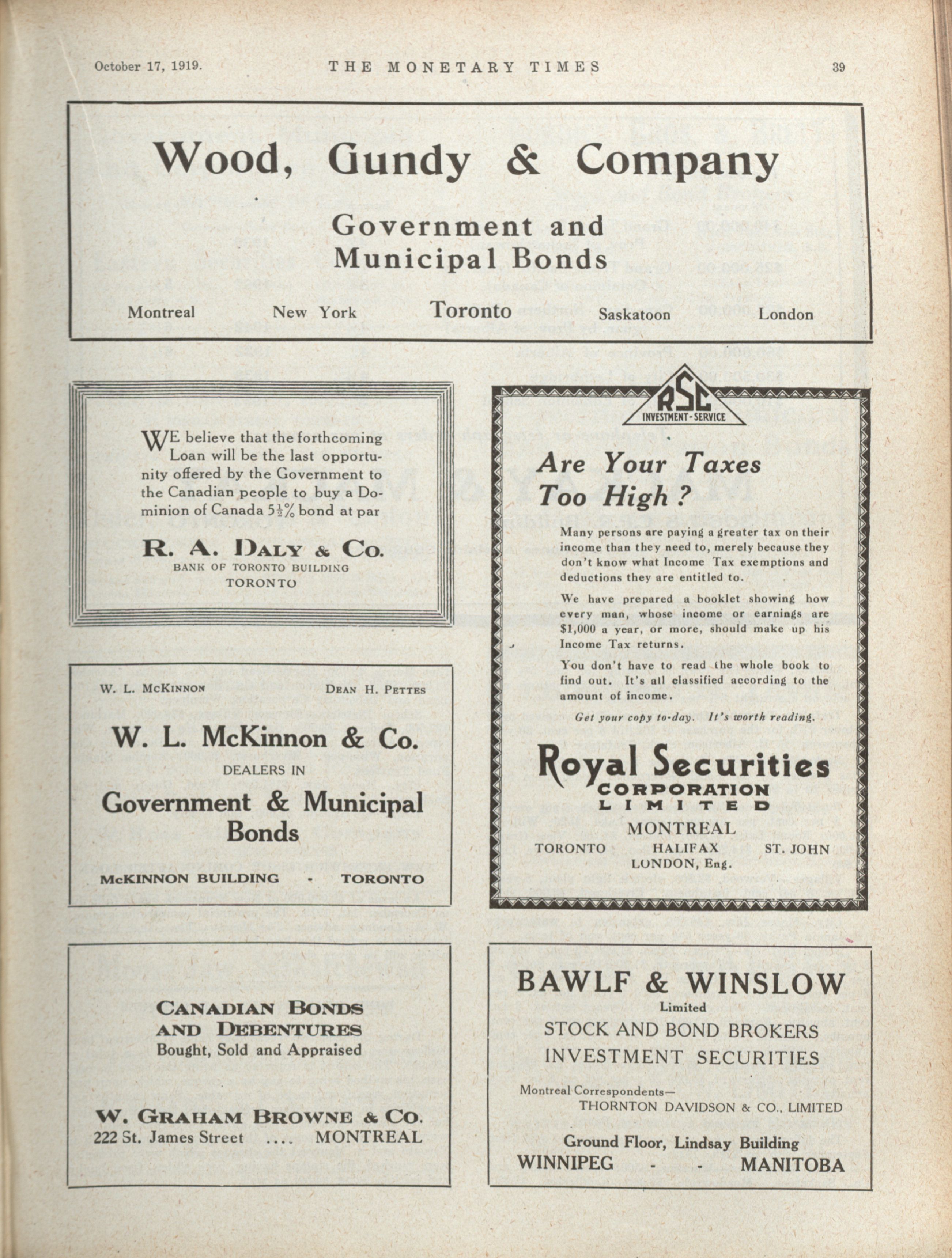 - The Monetary Times, trade review and insurance chronicle. : Volume 63 No. 16 (October 17, 1919)
