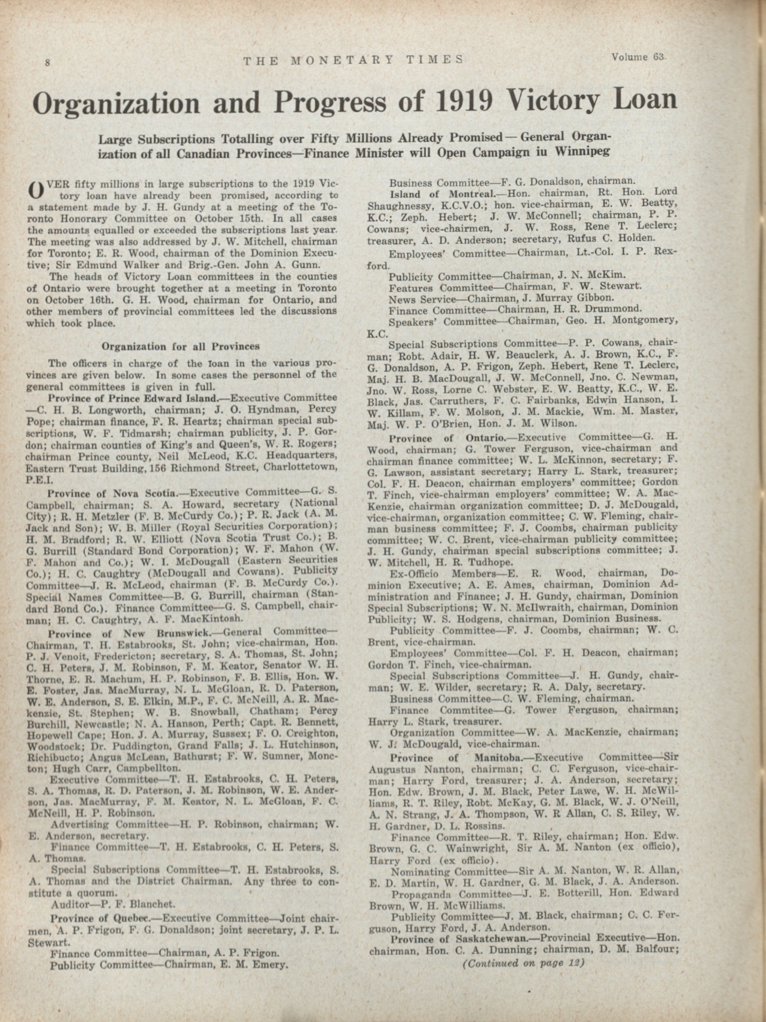 - The Monetary Times, trade review and insurance chronicle. : Volume 63 No. 16 (October 17, 1919)