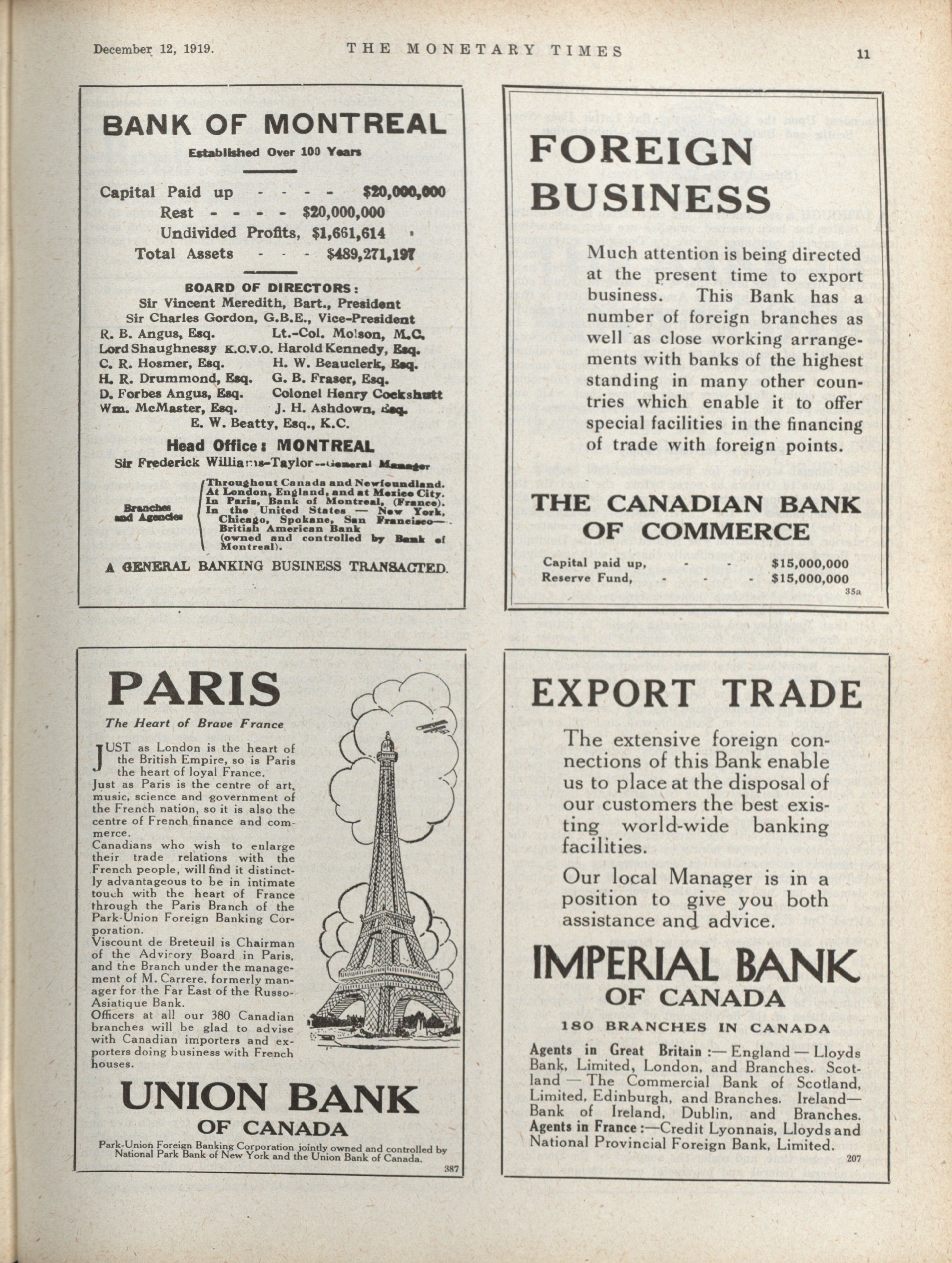 - The Monetary Times, trade review and insurance chronicle. : Volume 63 No. 24 (December 12, 1919)