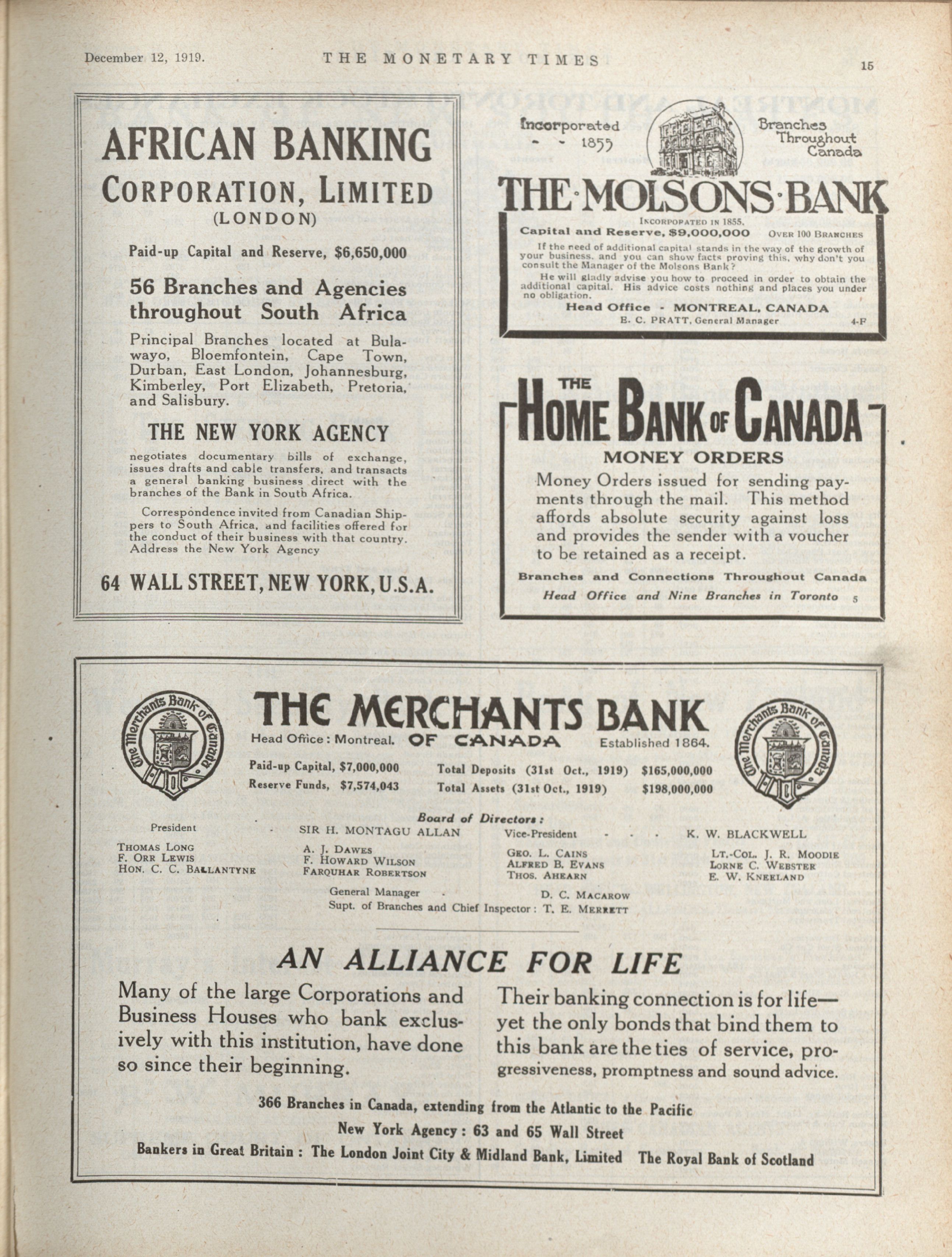 - The Monetary Times, trade review and insurance chronicle. : Volume 63 No. 24 (December 12, 1919)