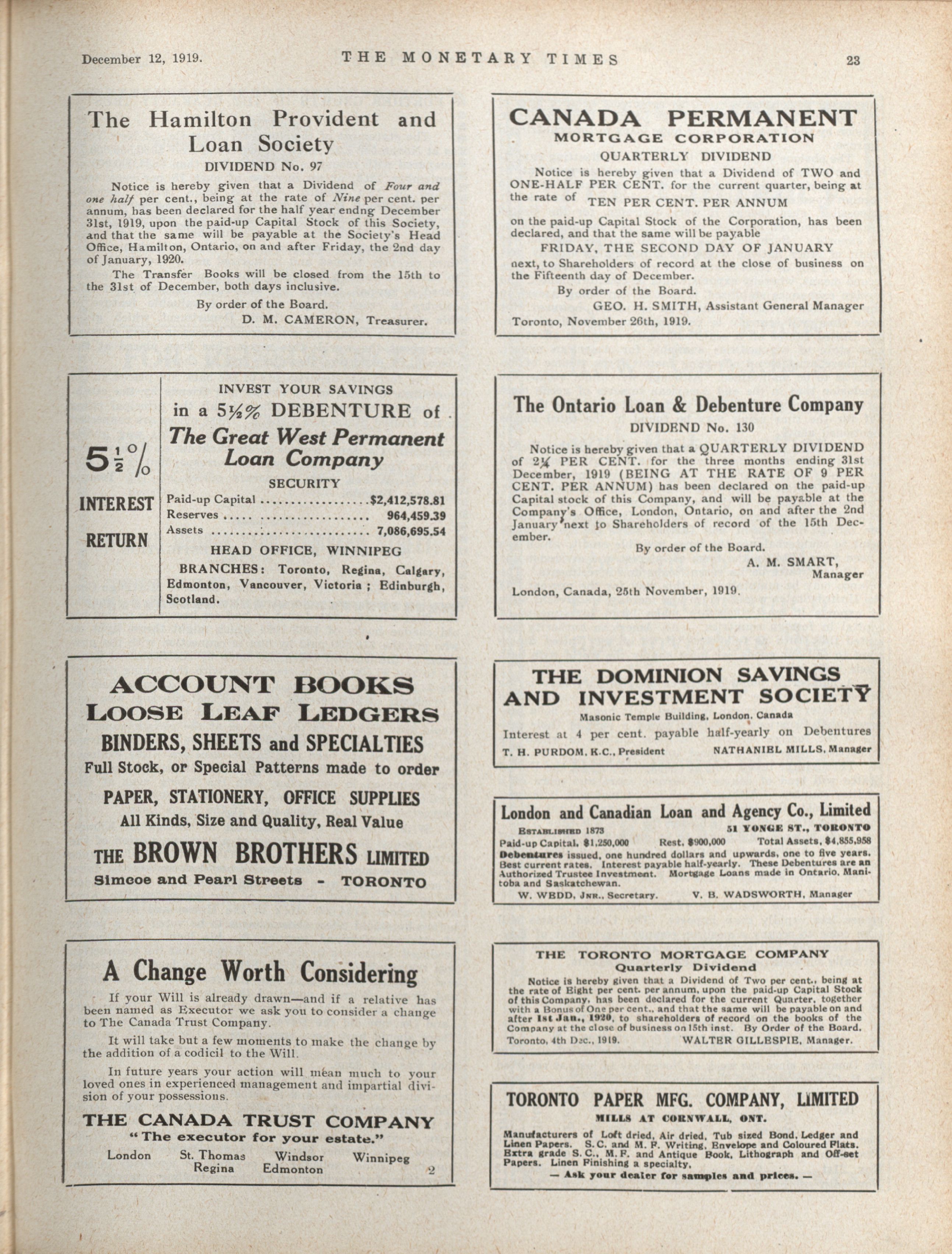 - The Monetary Times, trade review and insurance chronicle. : Volume 63 No. 24 (December 12, 1919)