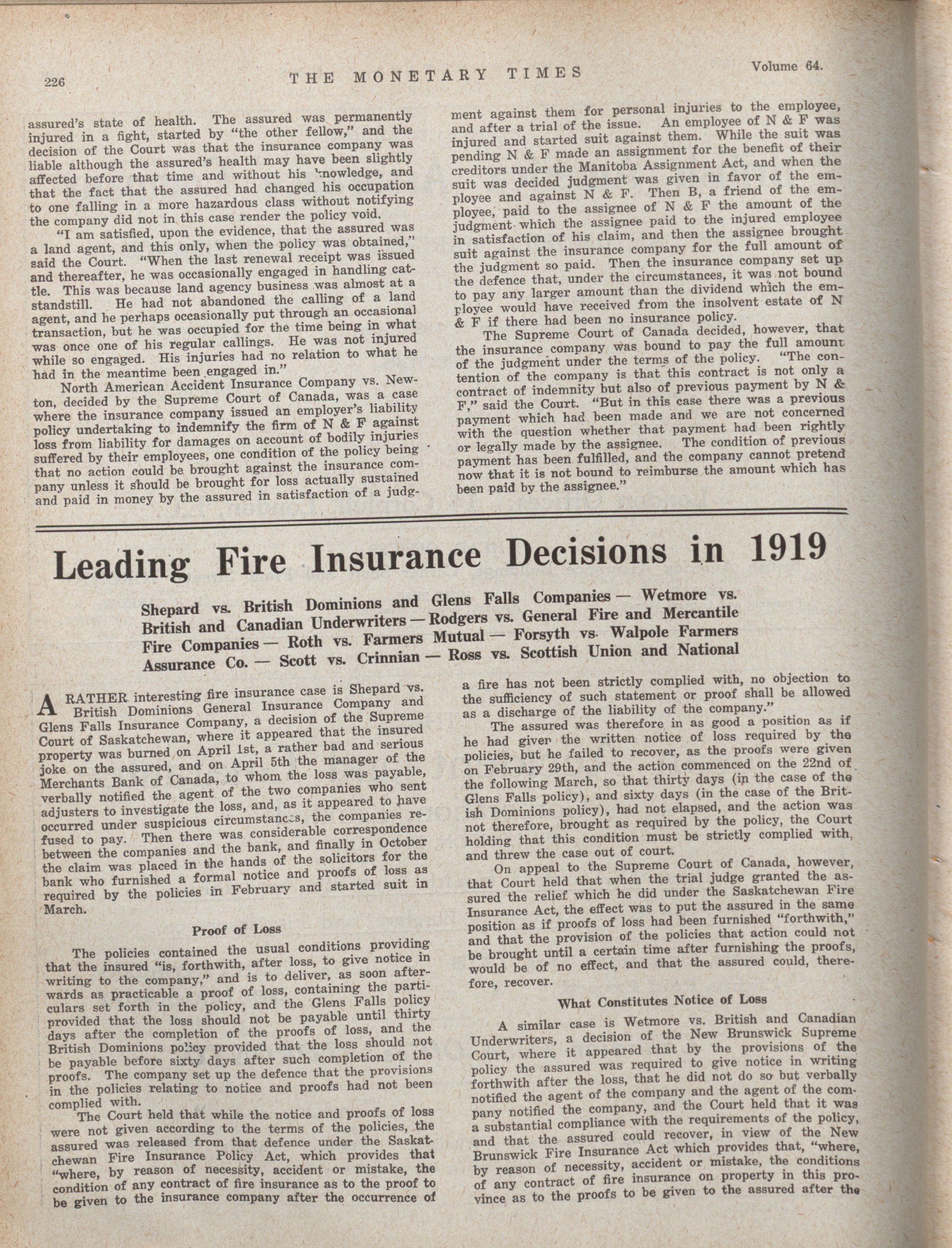 The Monetary Times, trade review and insurance chronicle. : Volume 64 No. 2 (January 9, 1920)