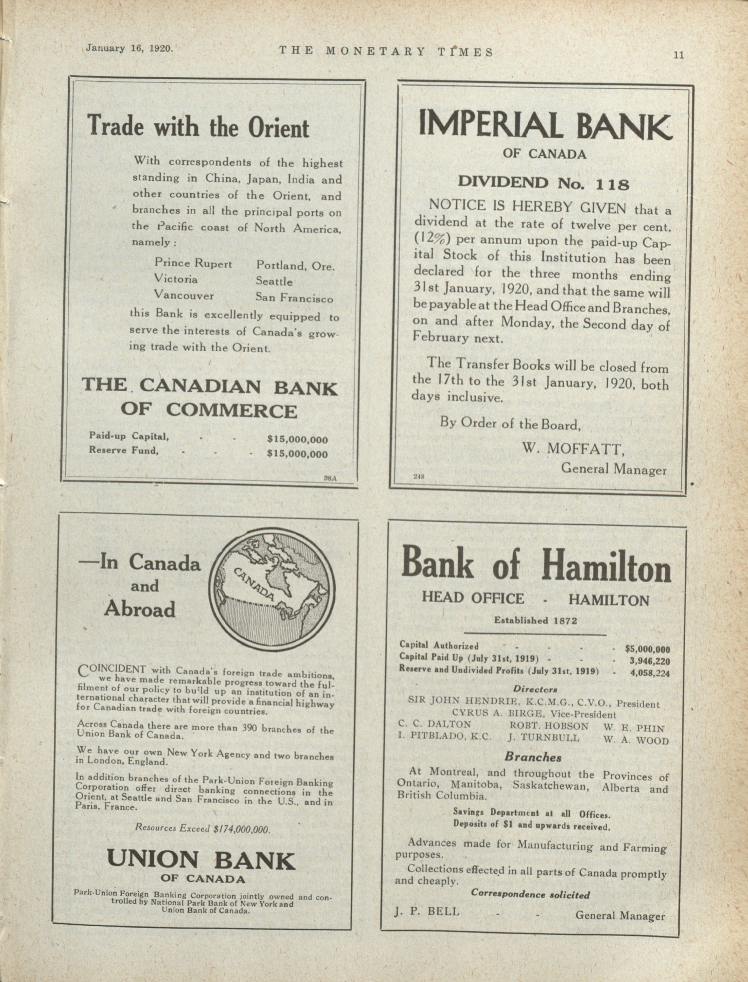 - The Monetary Times, trade review and insurance chronicle. : Volume 64 No. 3 (January 16, 1920)