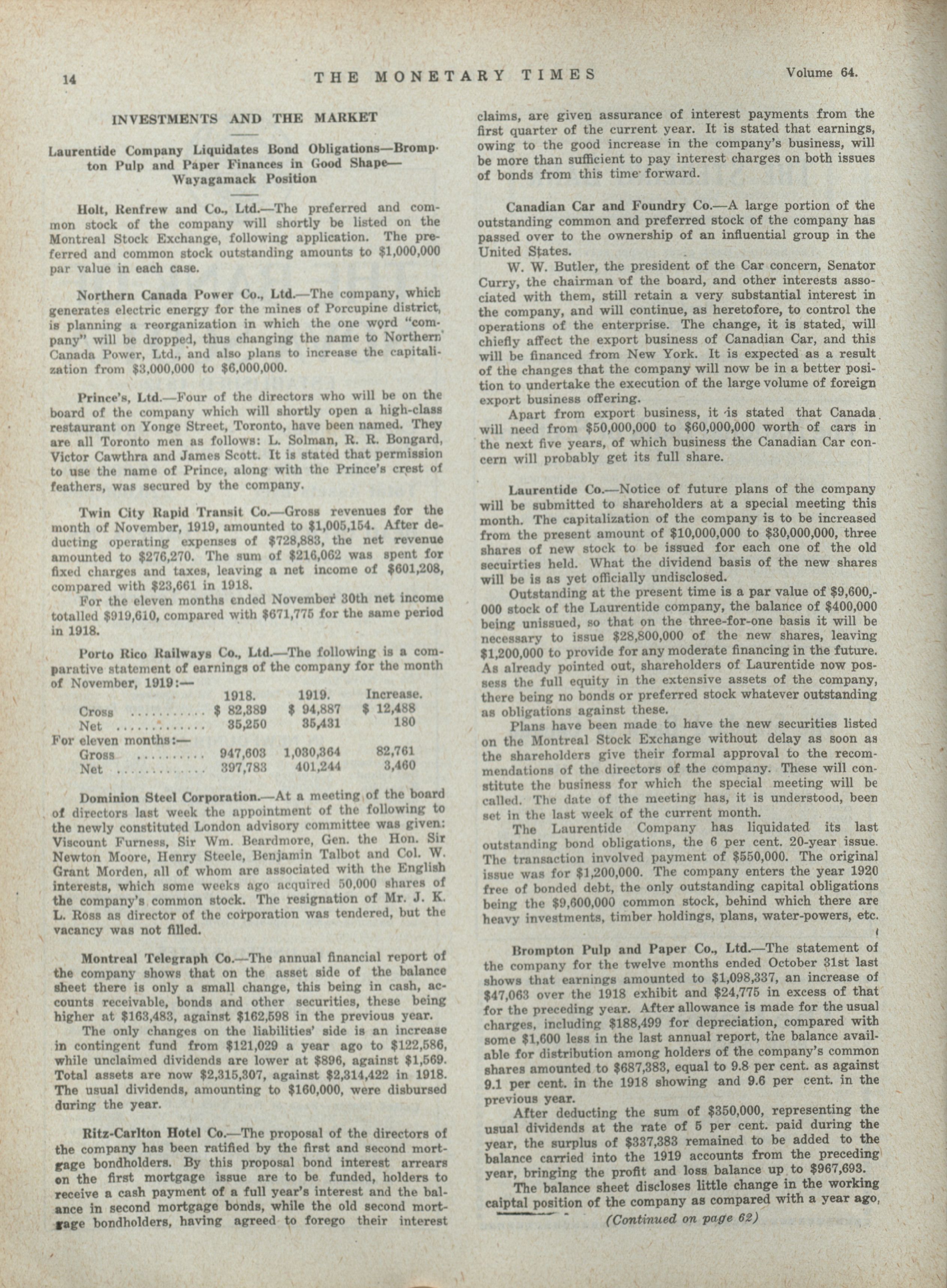 - The Monetary Times, trade review and insurance chronicle. : Volume 64 No. 3 (January 16, 1920)