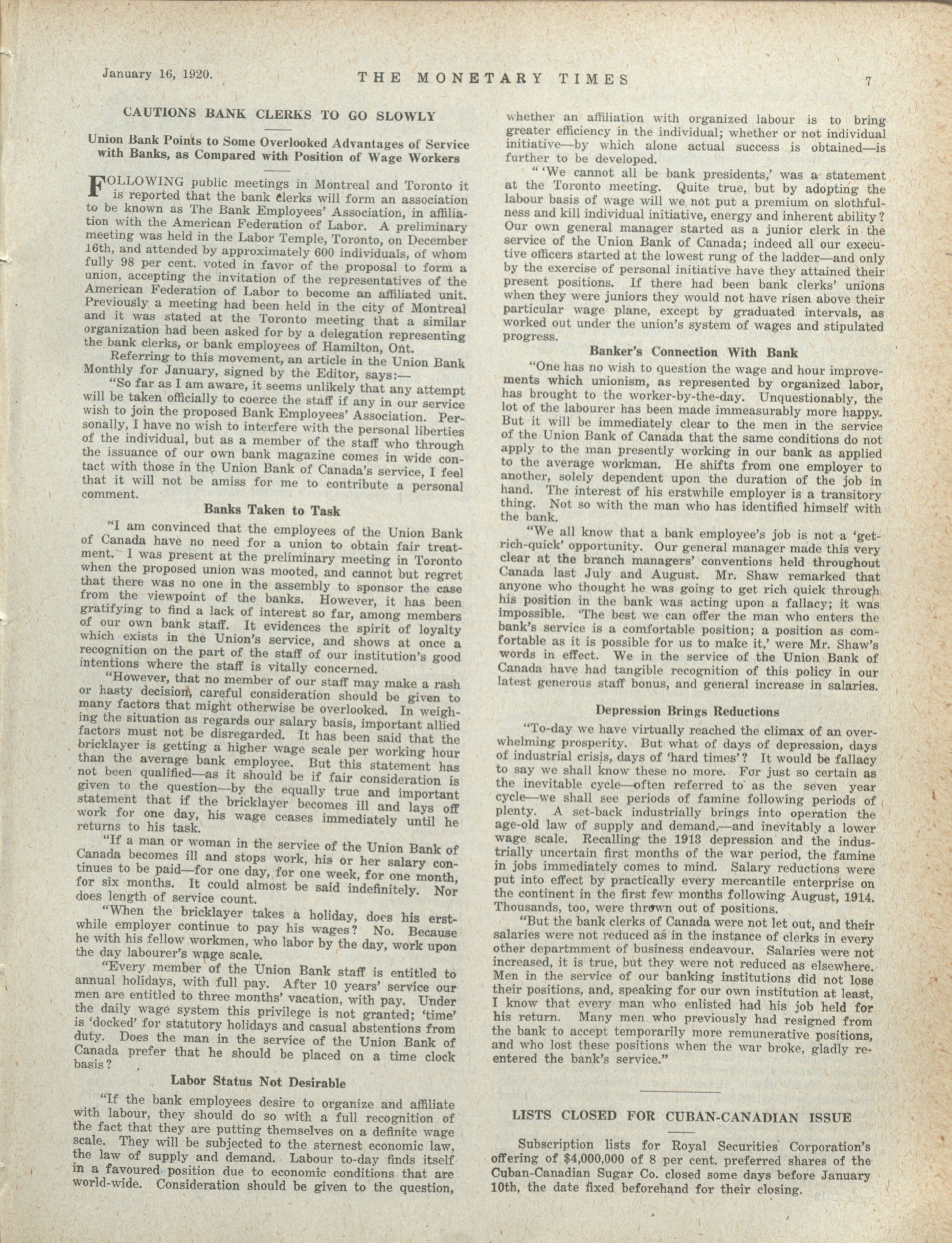 - The Monetary Times, trade review and insurance chronicle. : Volume 64 No. 3 (January 16, 1920)