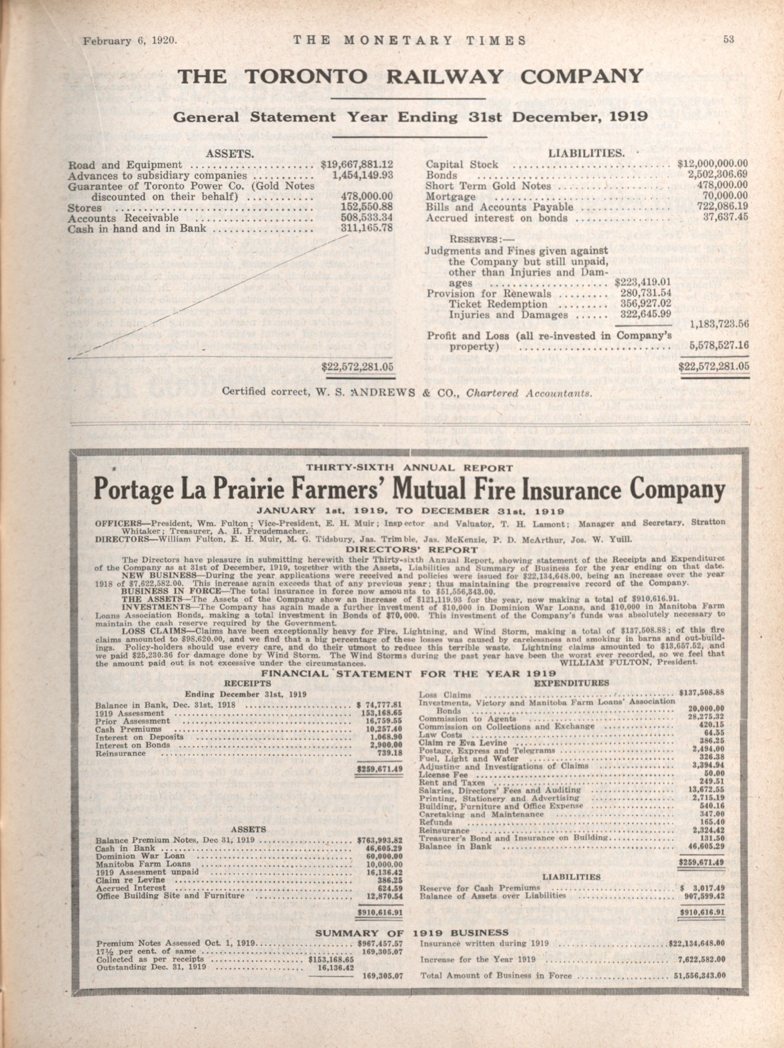 - The Monetary Times, trade review and insurance chronicle. : Volume 64 No. 6 (February 6, 1920)