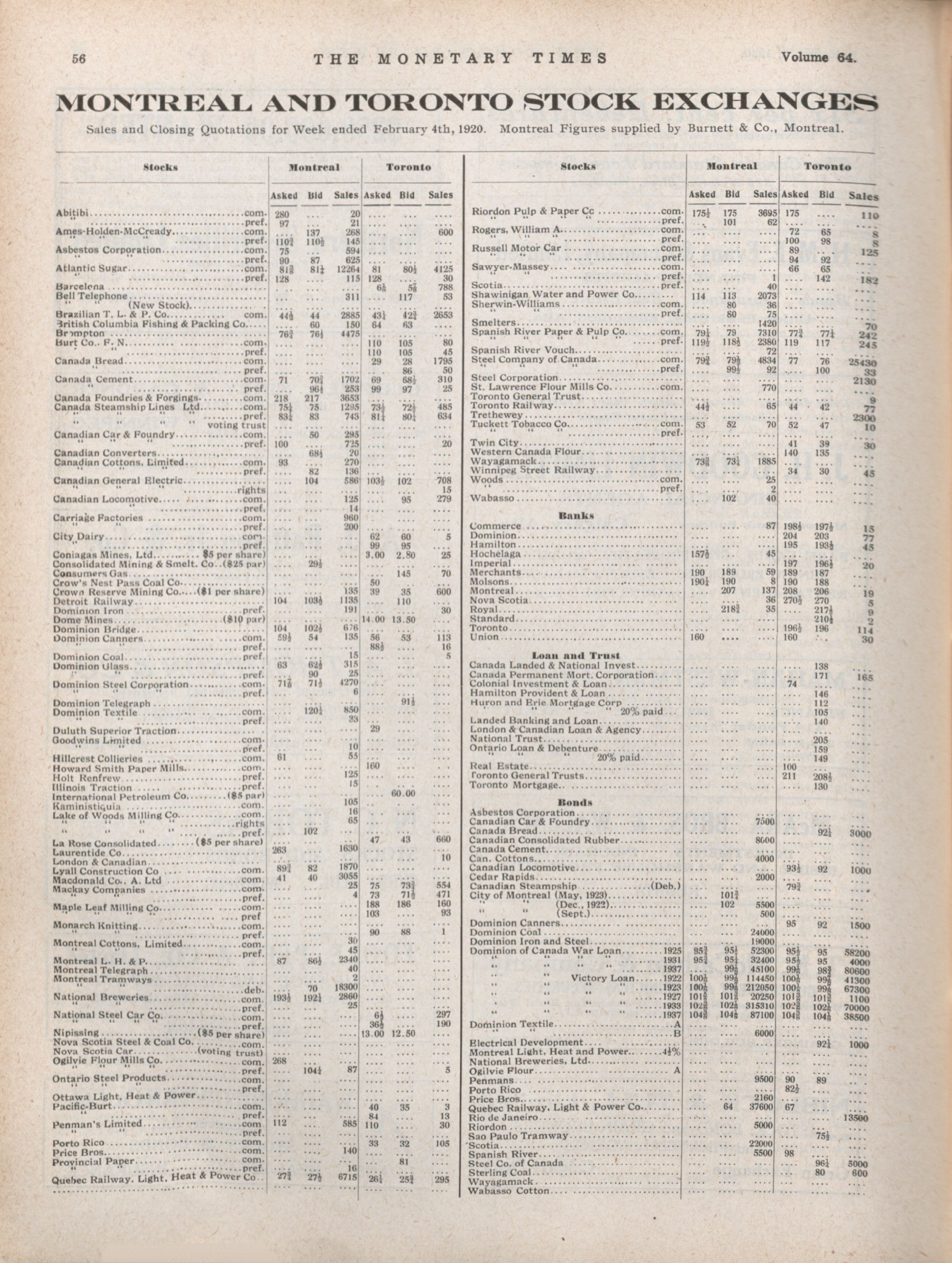 - The Monetary Times, trade review and insurance chronicle. : Volume 64 No. 6 (February 6, 1920)