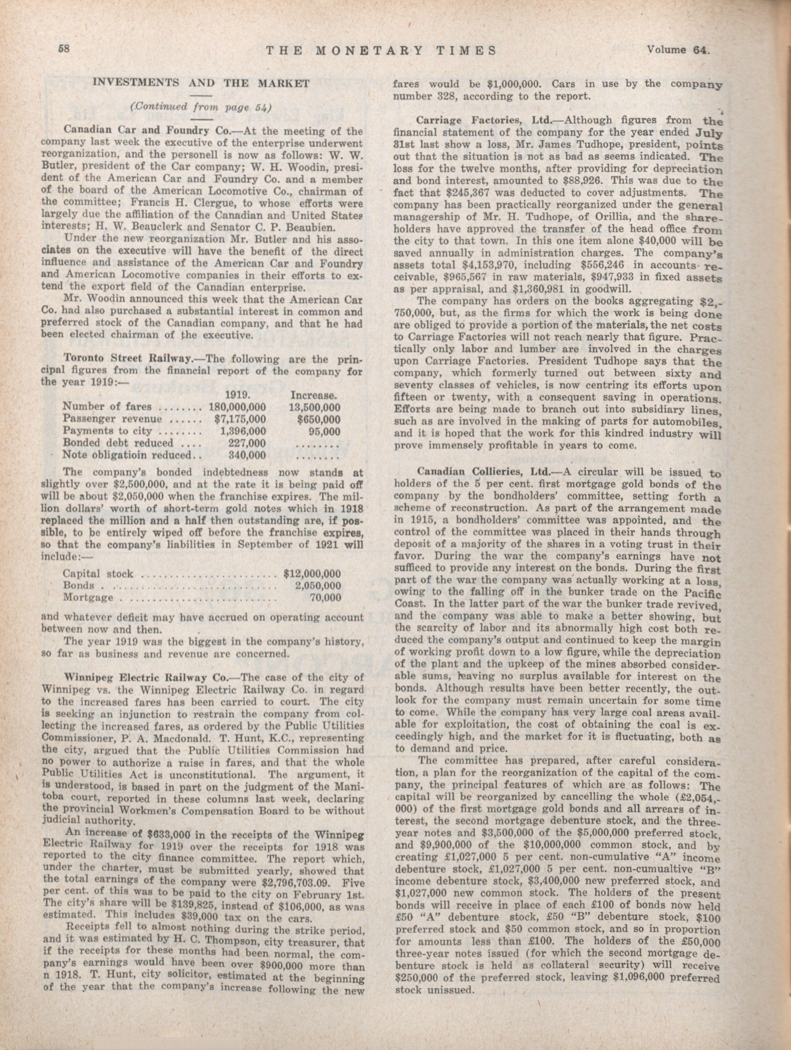 - The Monetary Times, trade review and insurance chronicle. : Volume 64 No. 6 (February 6, 1920)