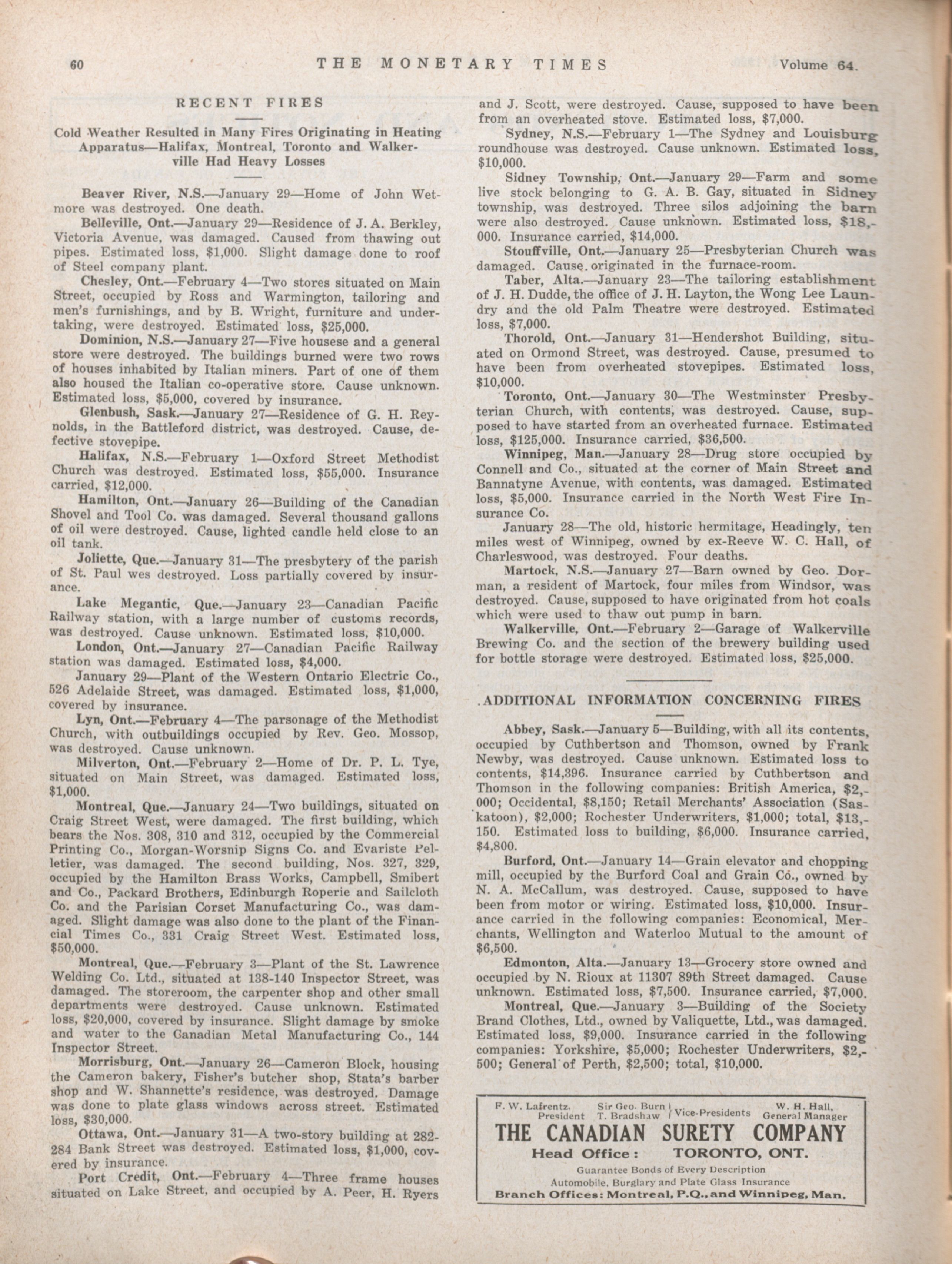 - The Monetary Times, trade review and insurance chronicle. : Volume 64 No. 6 (February 6, 1920)