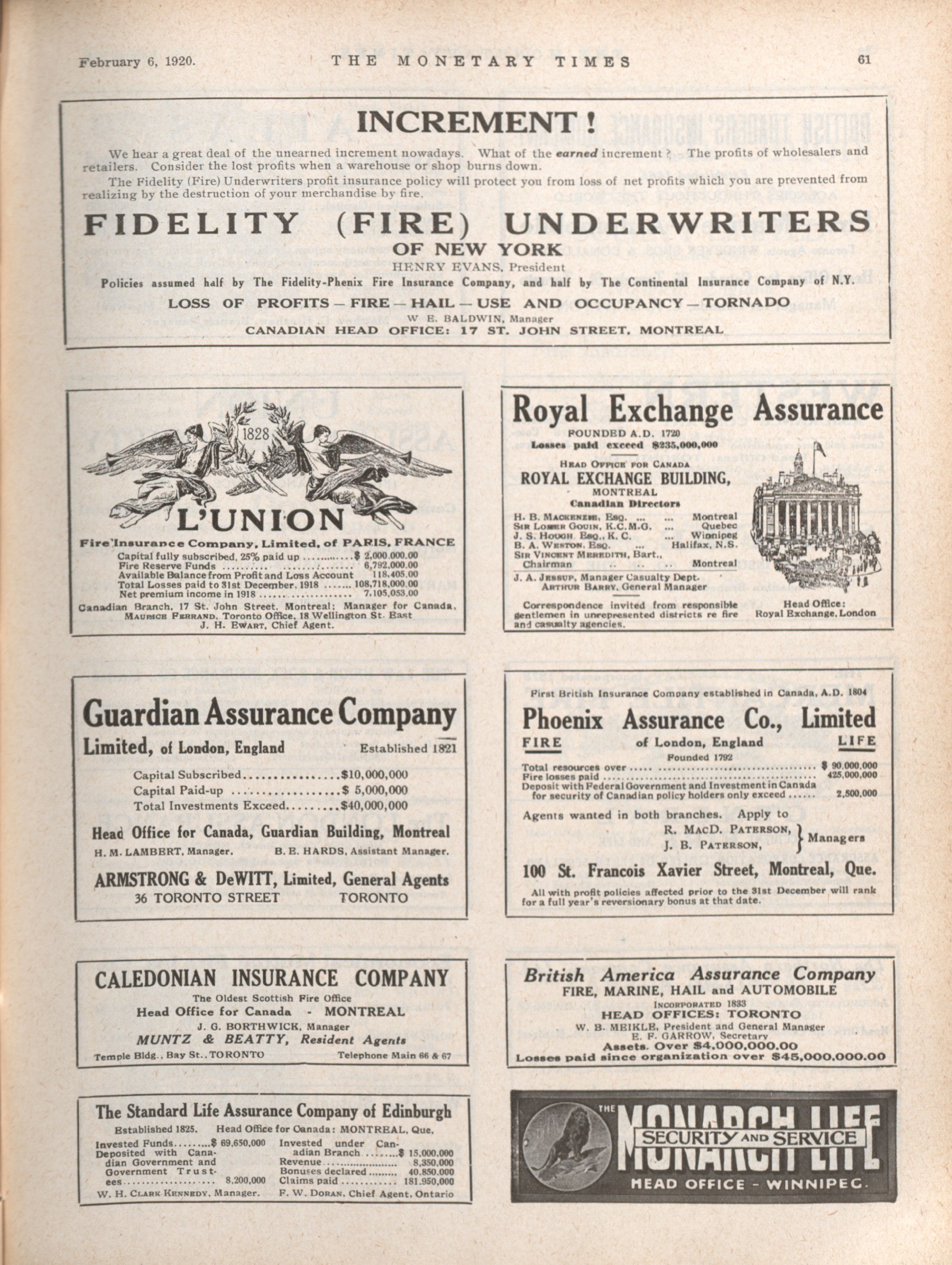 - The Monetary Times, trade review and insurance chronicle. : Volume 64 No. 6 (February 6, 1920)