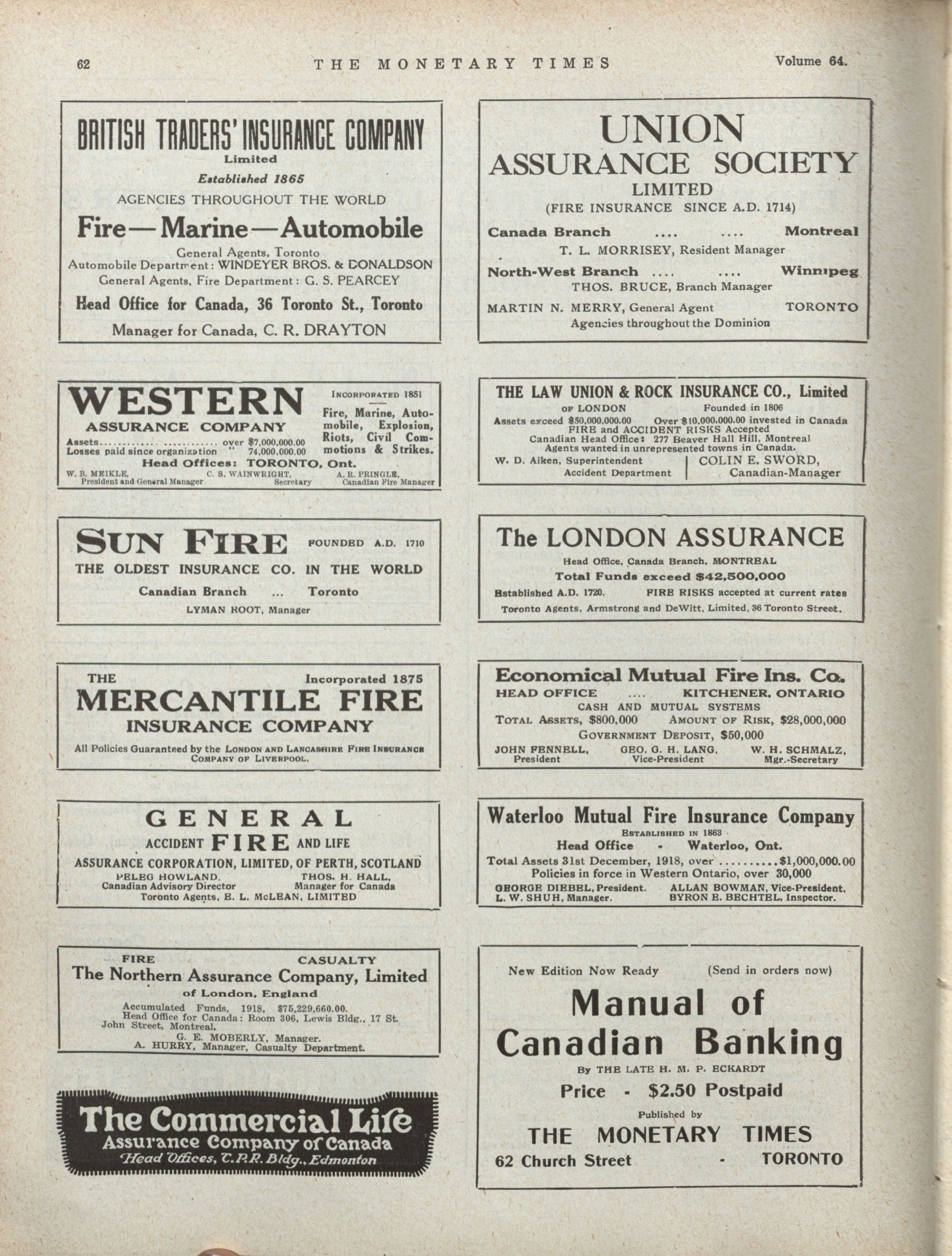- The Monetary Times, trade review and insurance chronicle. : Volume 64 No. 9 (February 27, 1920)