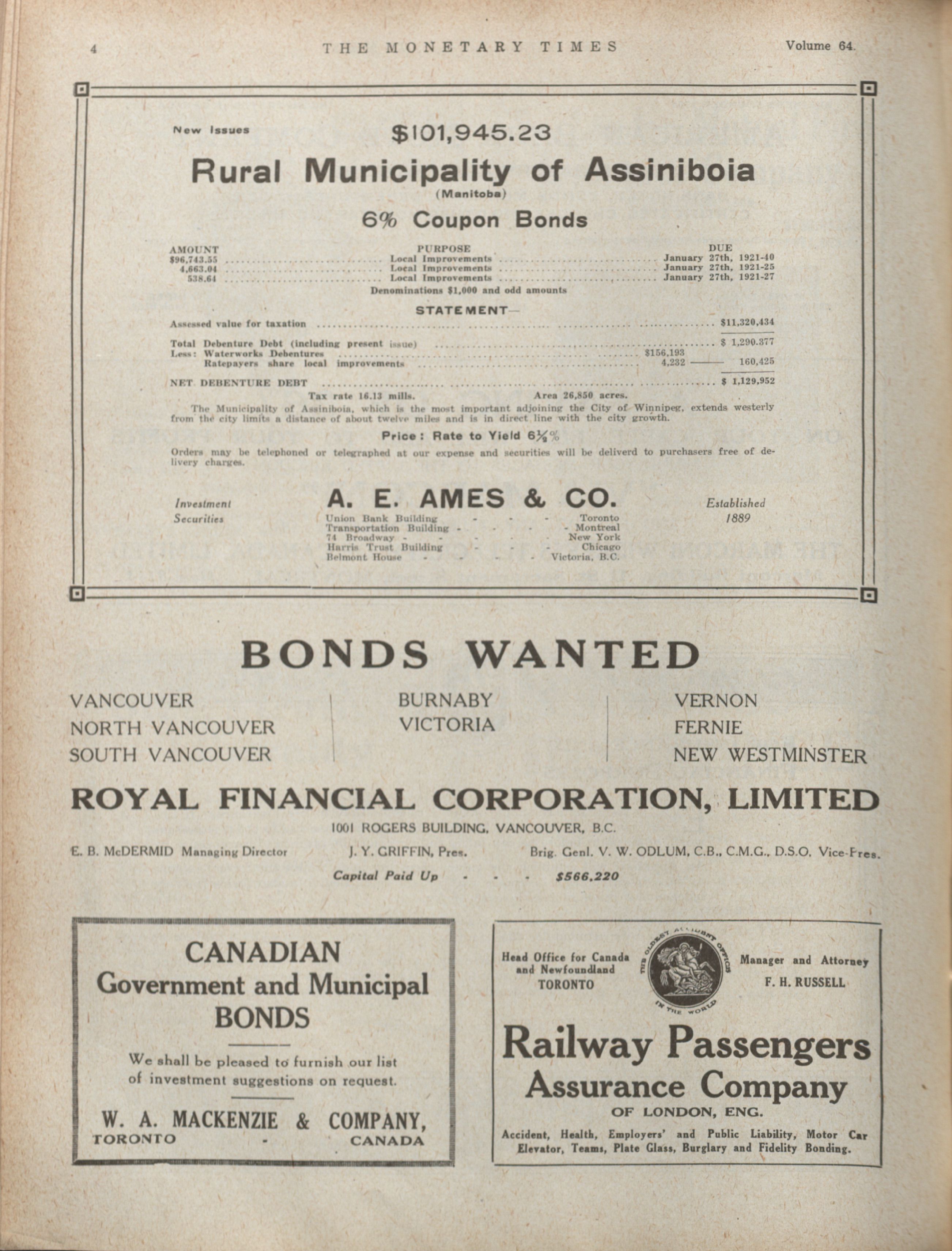 The monetary times, trade review and insurance chronicle : Volume 64 No. 15 (April 9, 1920)