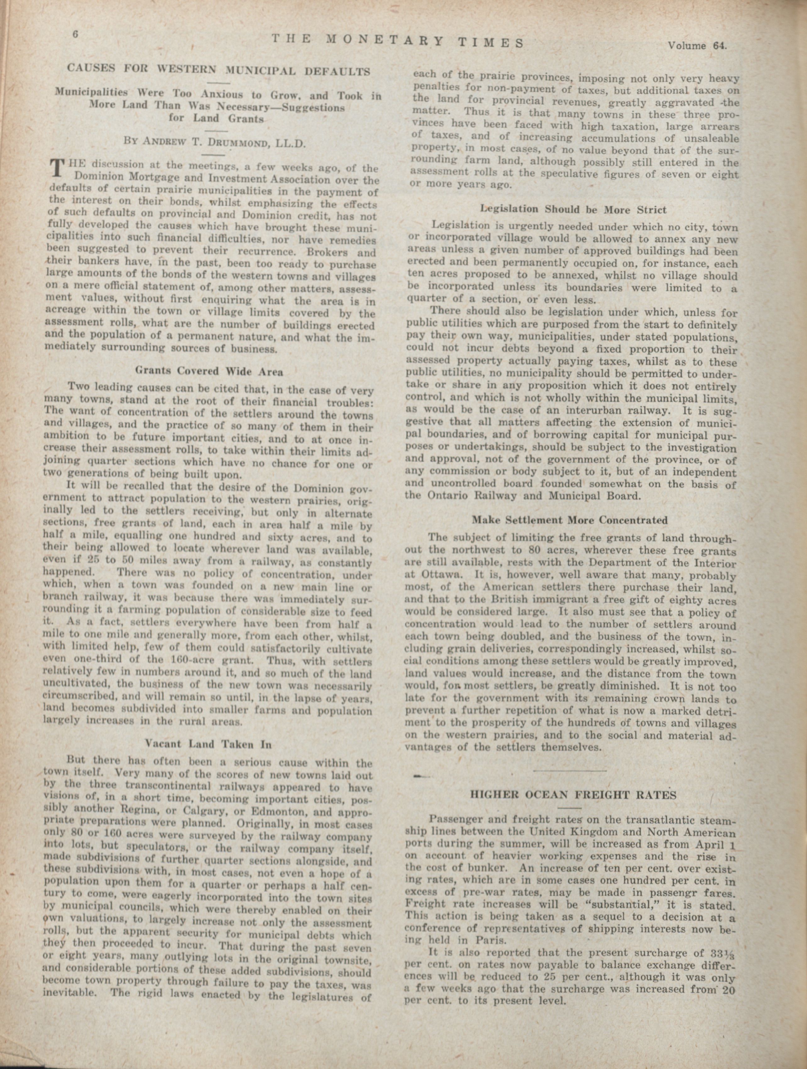 The monetary times, trade review and insurance chronicle : Volume 64 No. 15 (April 9, 1920)