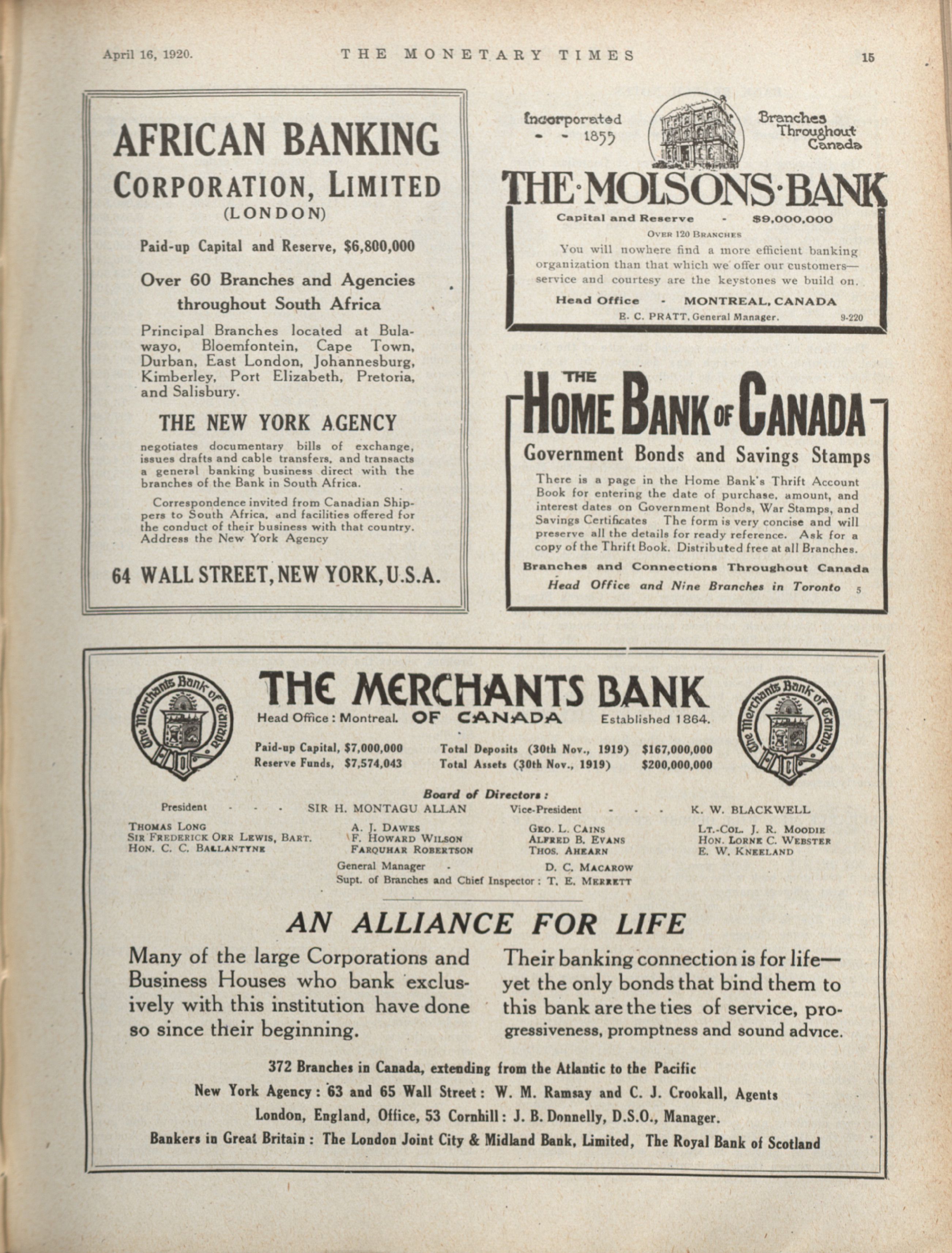 The Monetary Times, trade review and insurance chronicle. : Volume 64 No. 16 (April 16, 1920)
