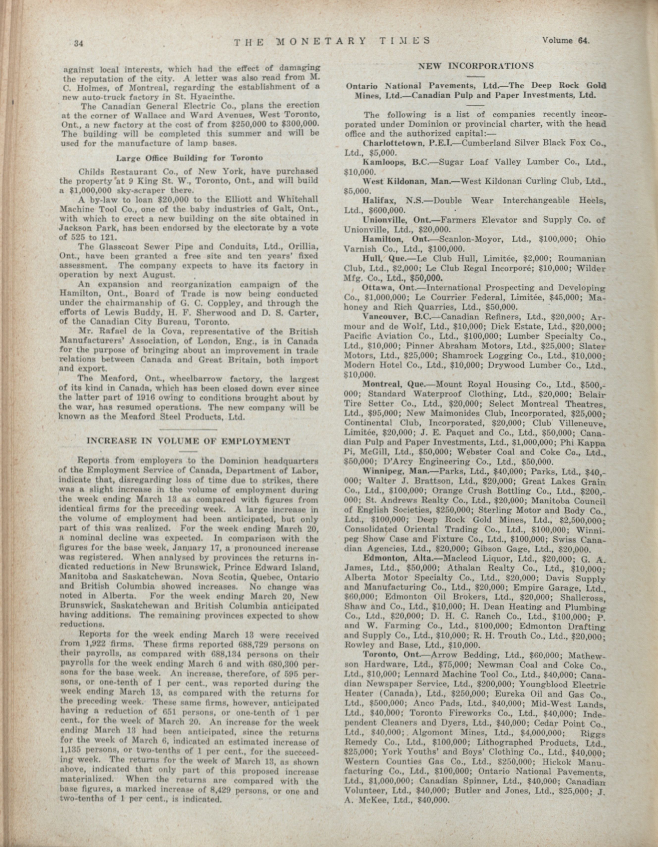 The Monetary Times, trade review and insurance chronicle. : Volume 64 No. 16 (April 16, 1920)