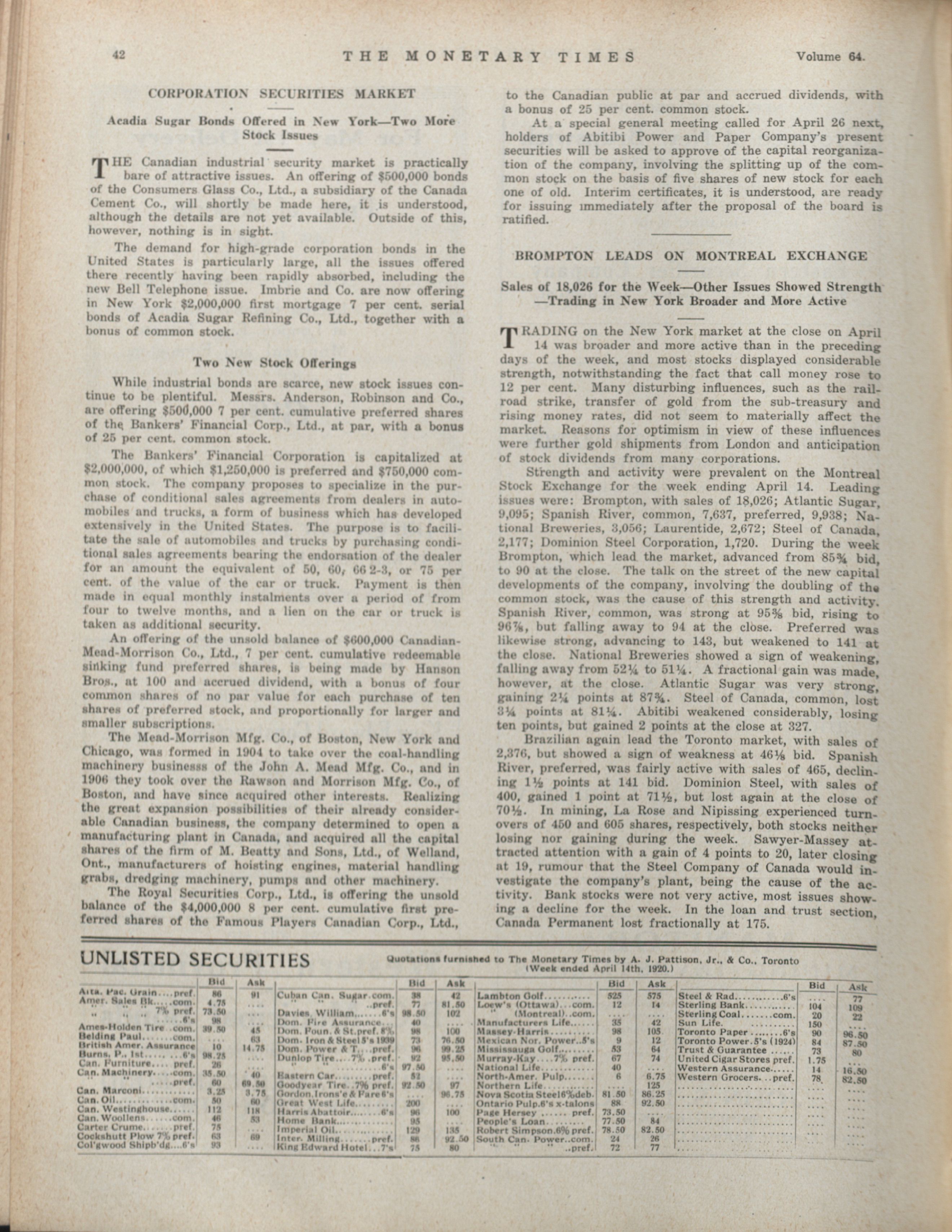 The Monetary Times, trade review and insurance chronicle. : Volume 64 No. 16 (April 16, 1920)