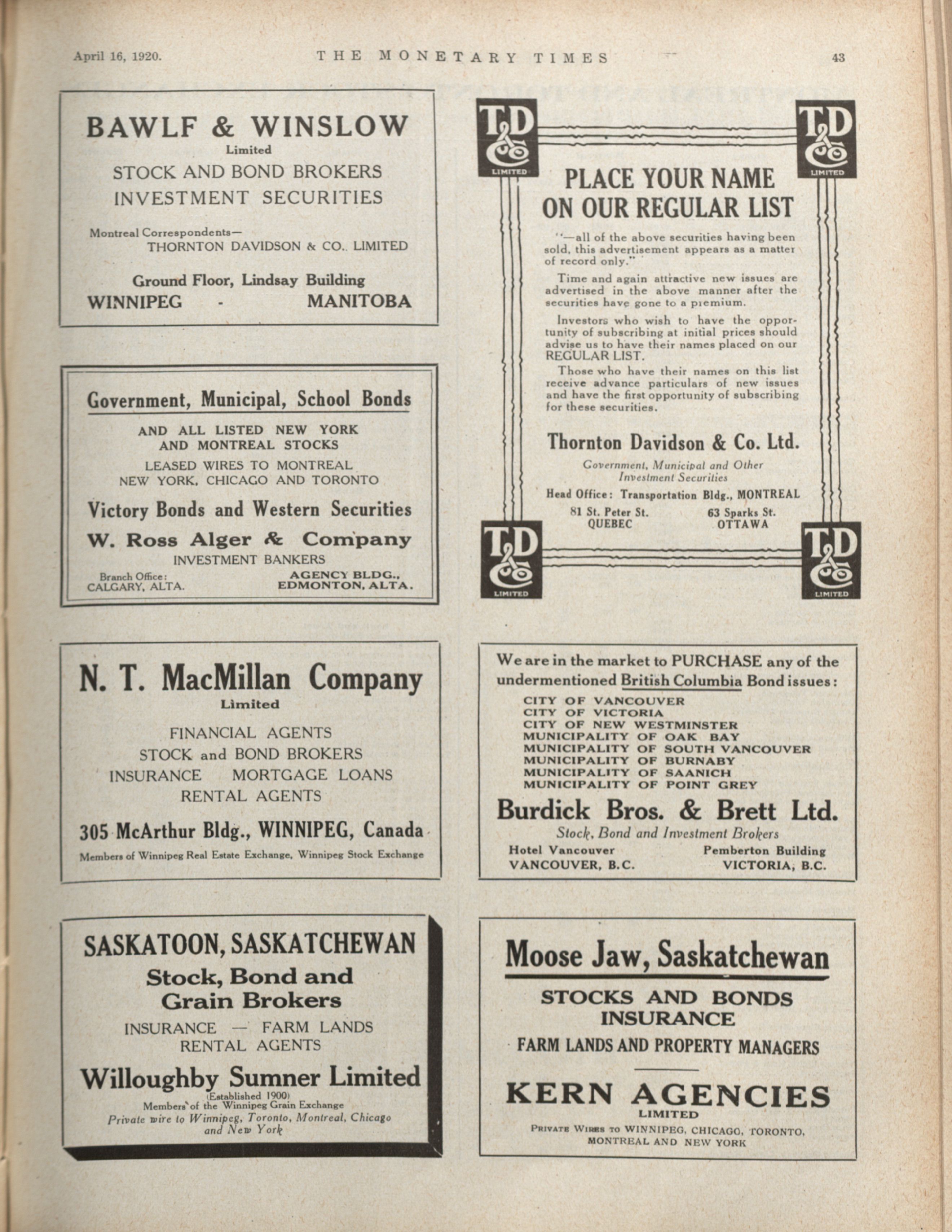 - The Monetary Times, trade review and insurance chronicle. : Volume 64 No. 16 (April 16, 1920)