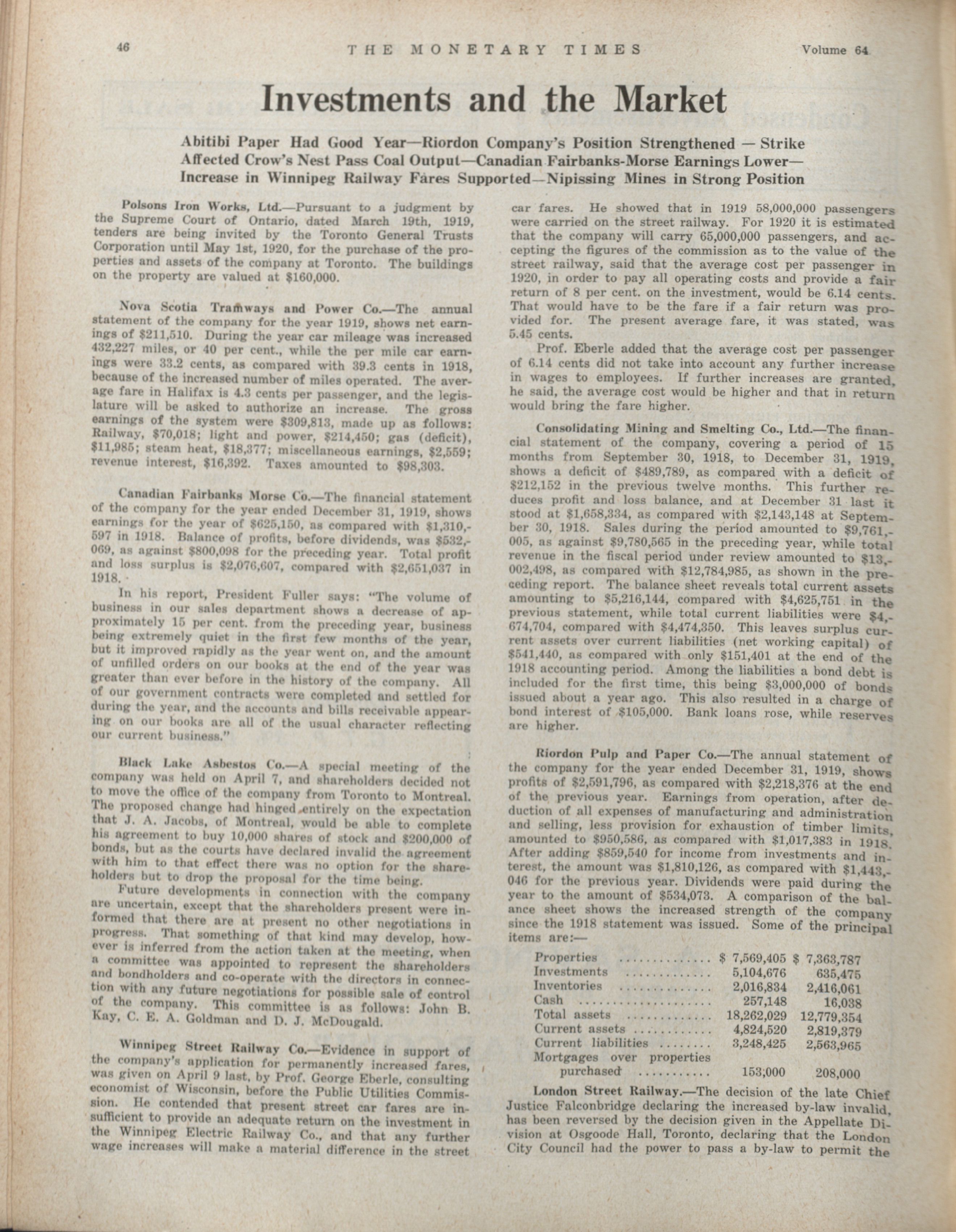 The Monetary Times, trade review and insurance chronicle. : Volume 64 No. 16 (April 16, 1920)