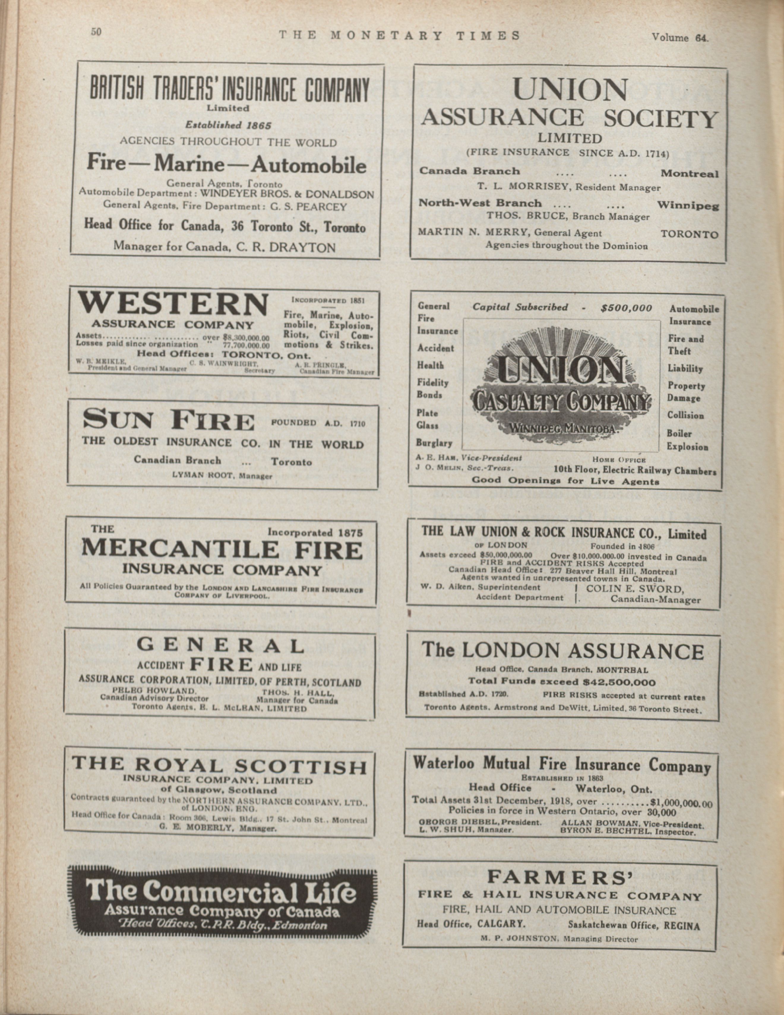 - The Monetary Times, trade review and insurance chronicle. : Volume 64 No. 16 (April 16, 1920)
