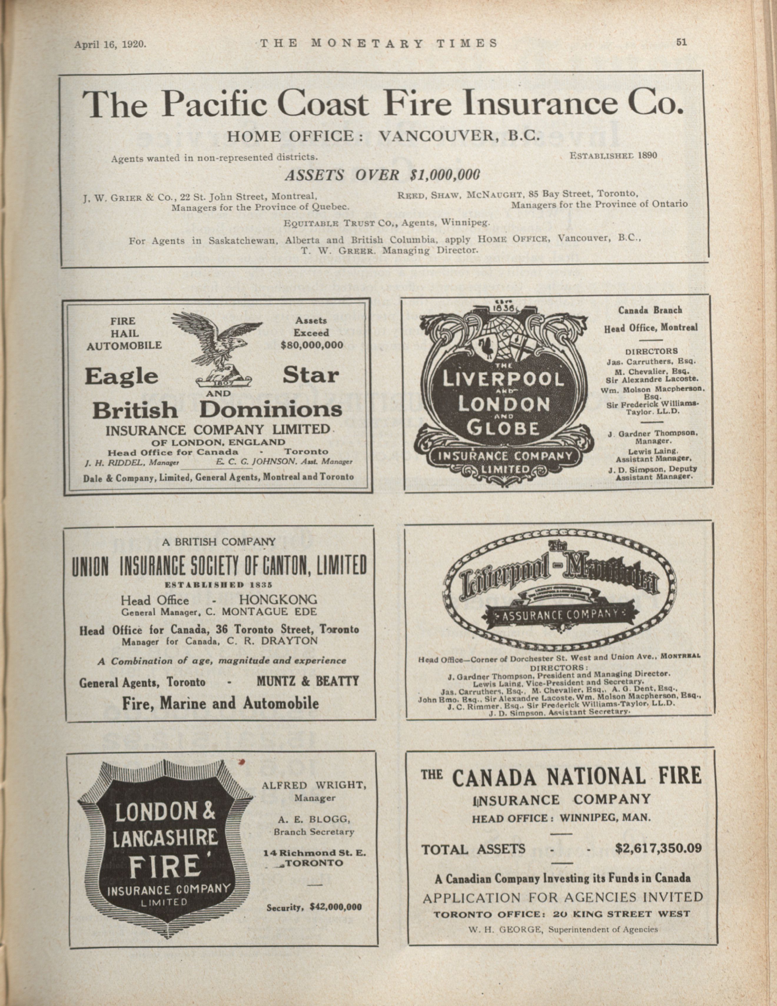 The Monetary Times, trade review and insurance chronicle. : Volume 64 No. 16 (April 16, 1920)