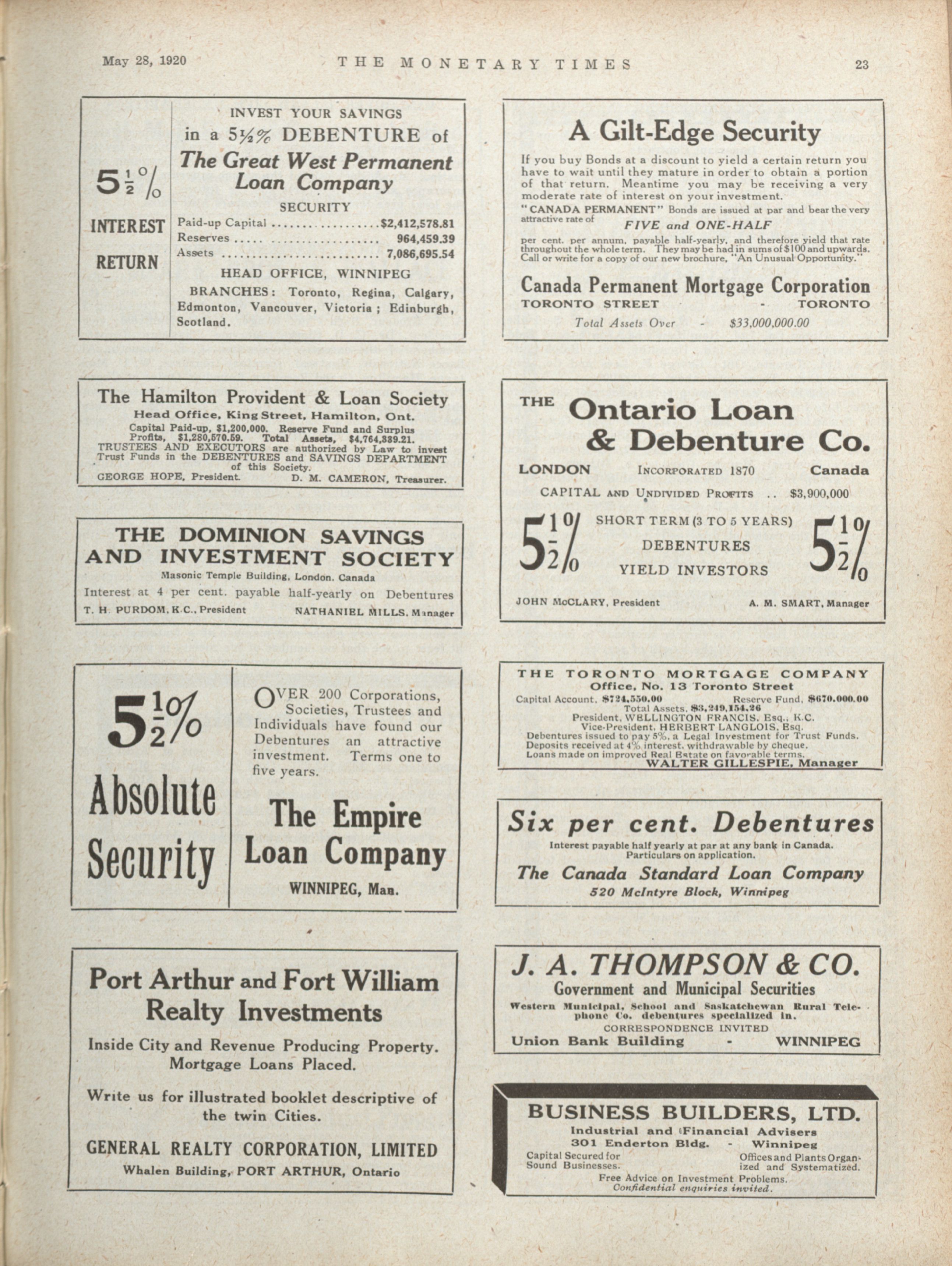- The Monetary Times, trade review and insurance chronicle. : Volume 64 No. 22 (May 28, 1920)