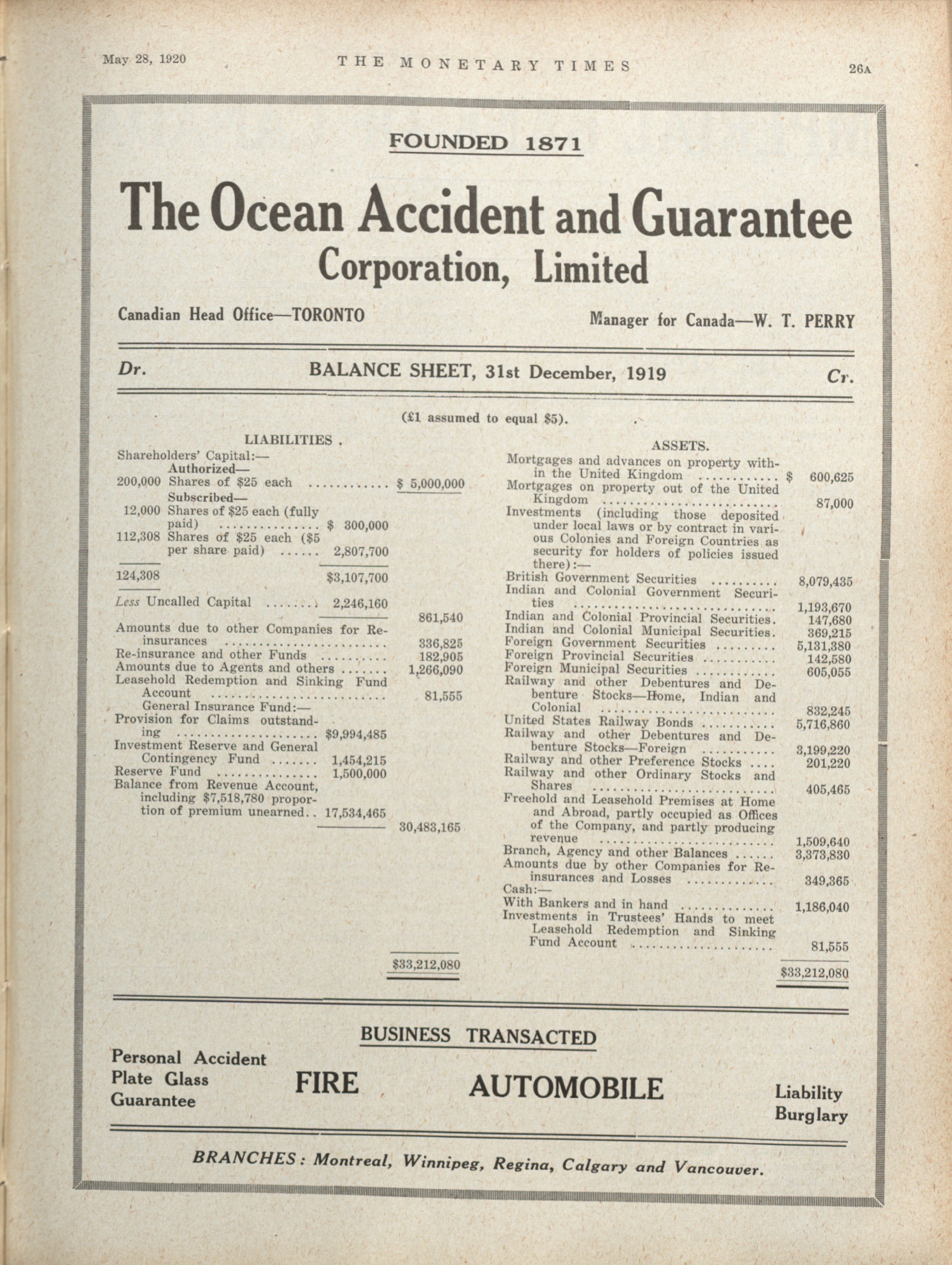 - The Monetary Times, trade review and insurance chronicle. : Volume 64 No. 22 (May 28, 1920)