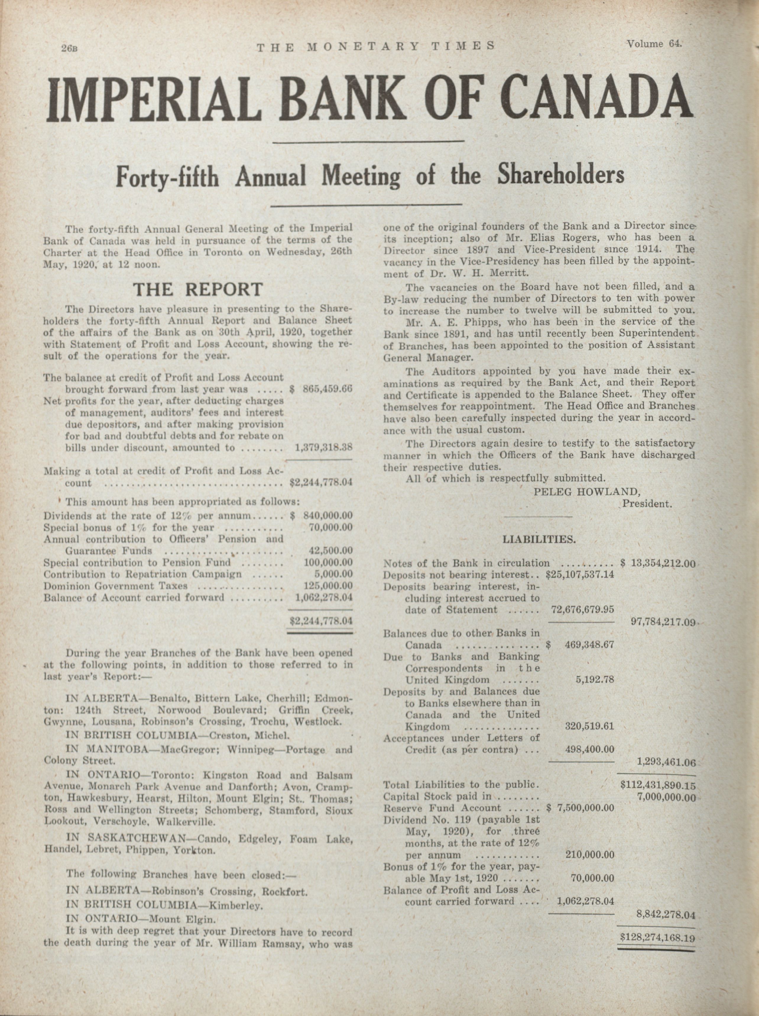 - The Monetary Times, trade review and insurance chronicle. : Volume 64 No. 22 (May 28, 1920)