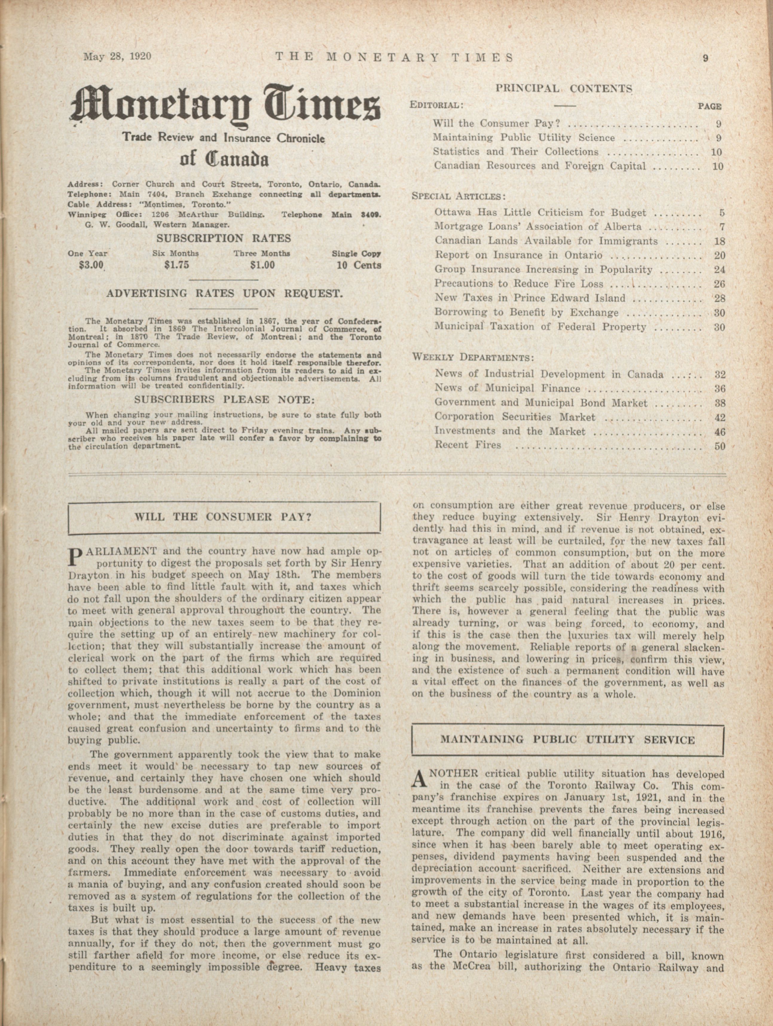 - The Monetary Times, trade review and insurance chronicle. : Volume 64 No. 22 (May 28, 1920)