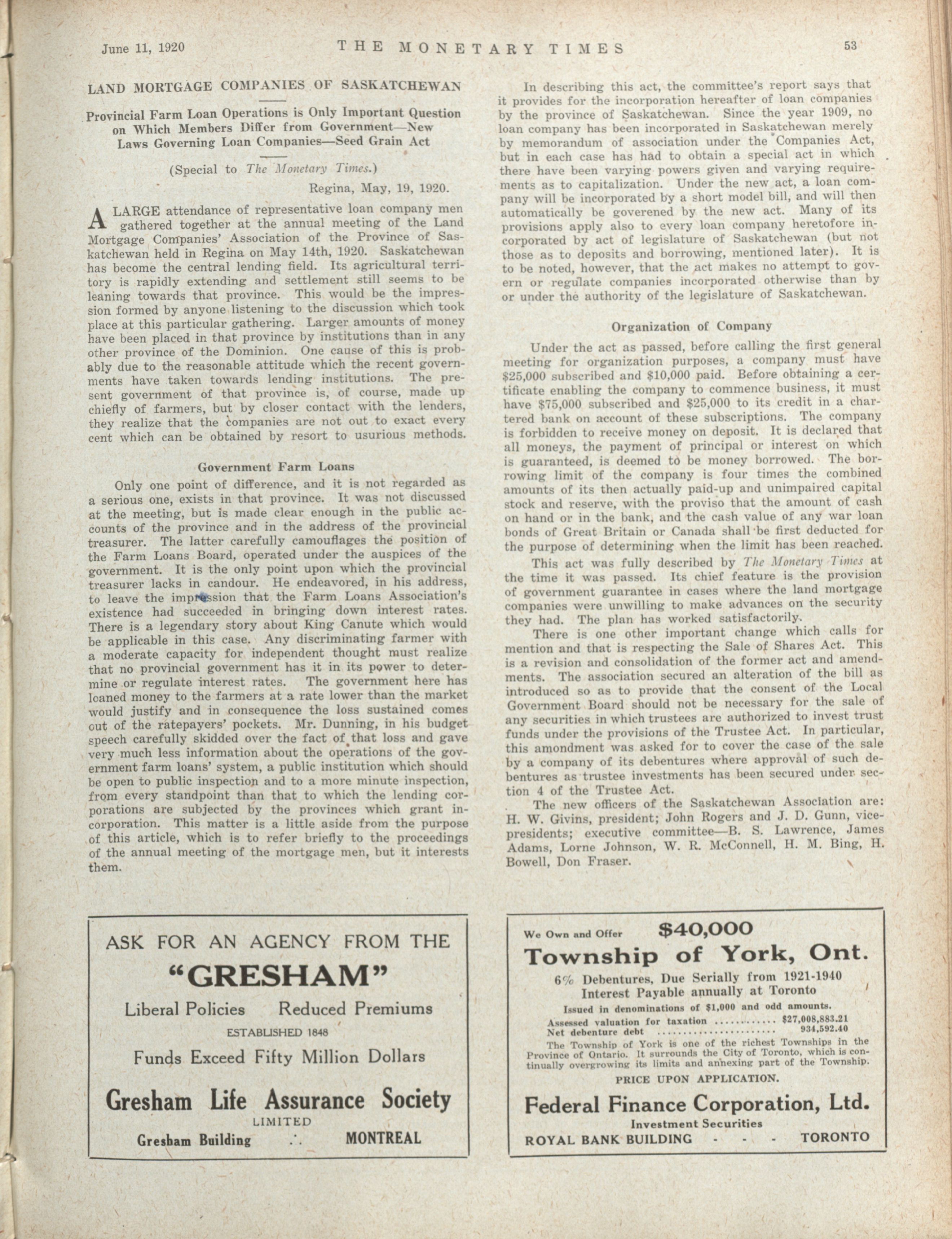 The Monetary Times, trade review and insurance chronicle. : Volume 64 No. 24 (June 11, 1920)
