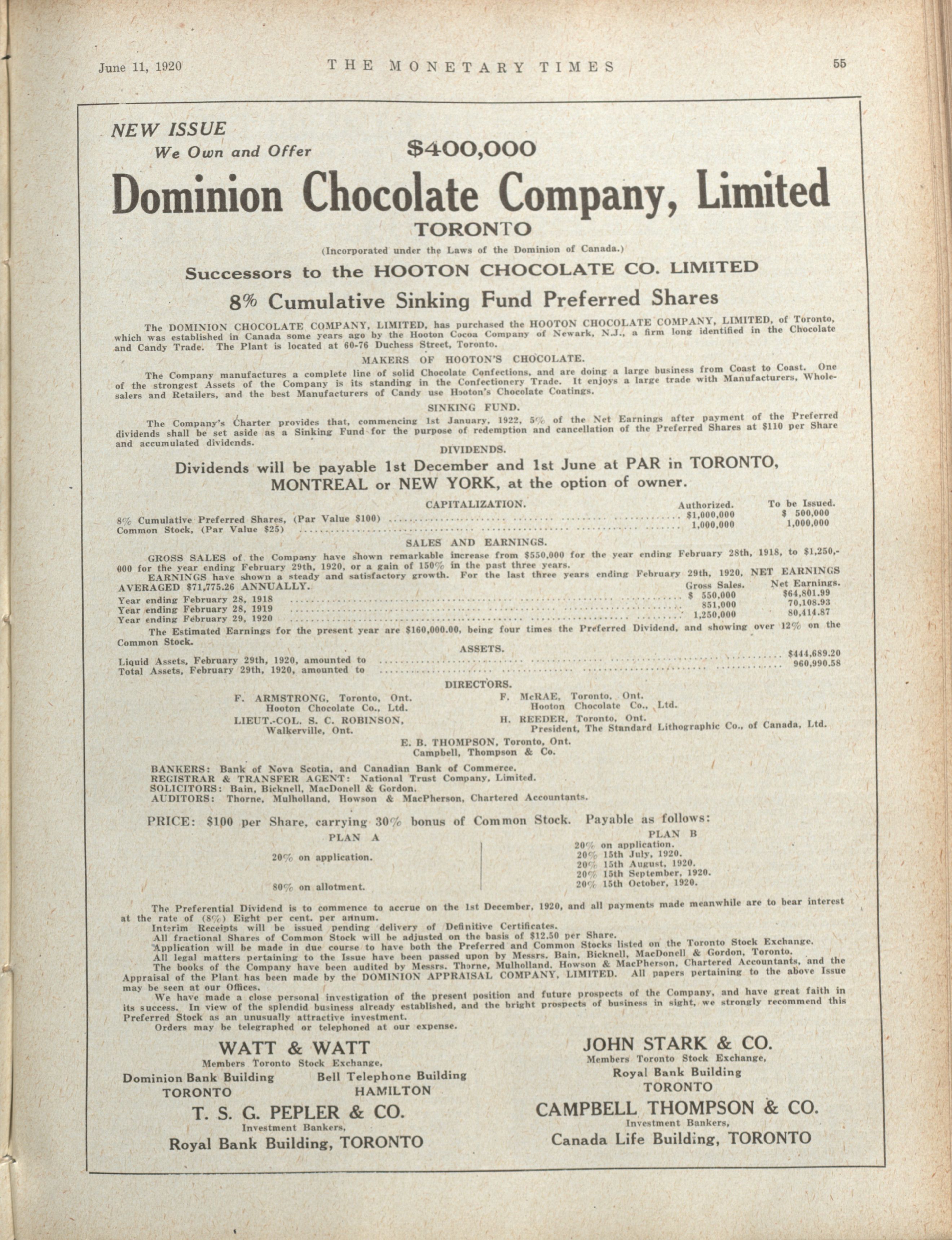 - The Monetary Times, trade review and insurance chronicle. : Volume 64 No. 24 (June 11, 1920)