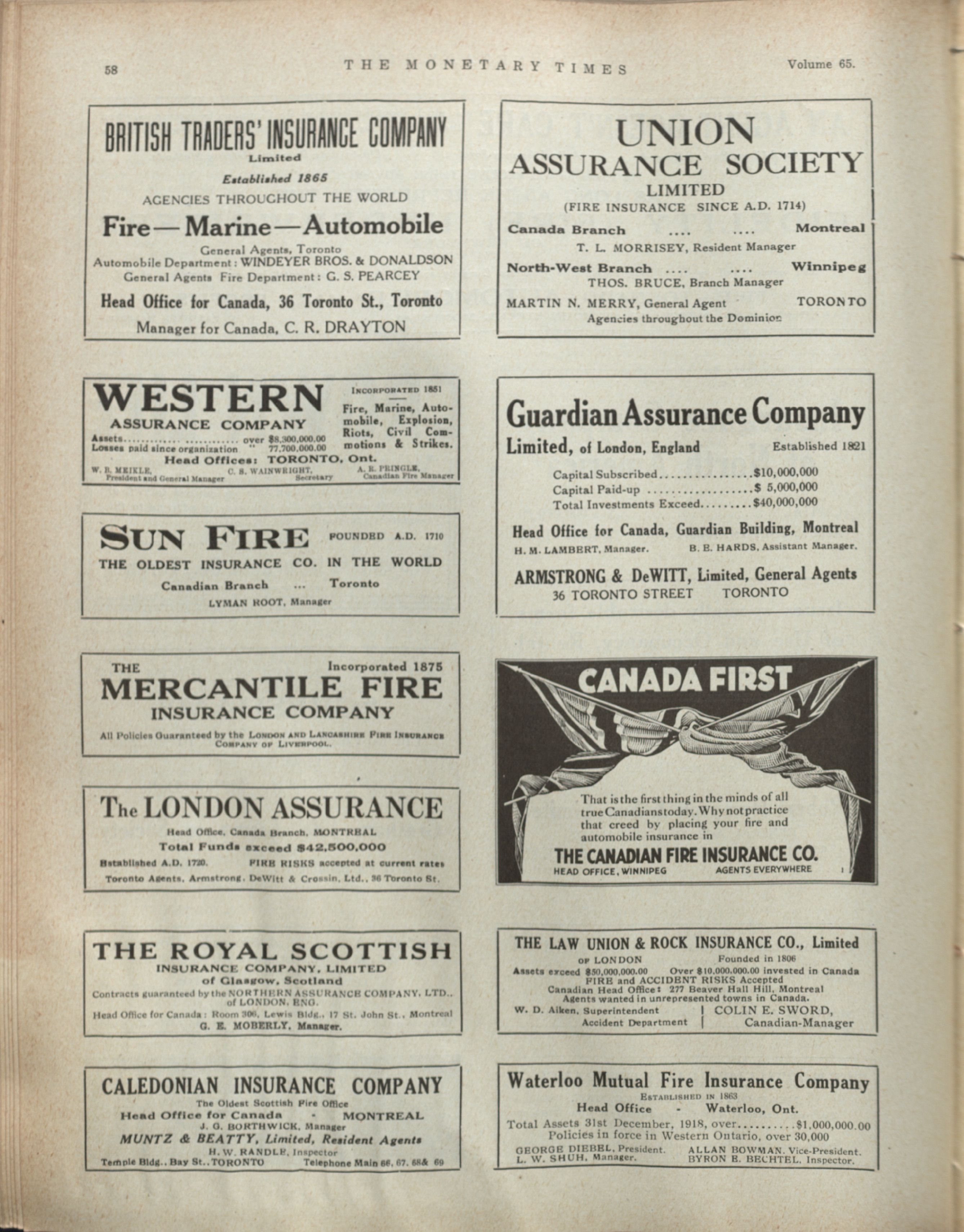 - The Monetary Times, trade review and insurance chronicle. : Volume 65 No. 4 (July 23, 1920)