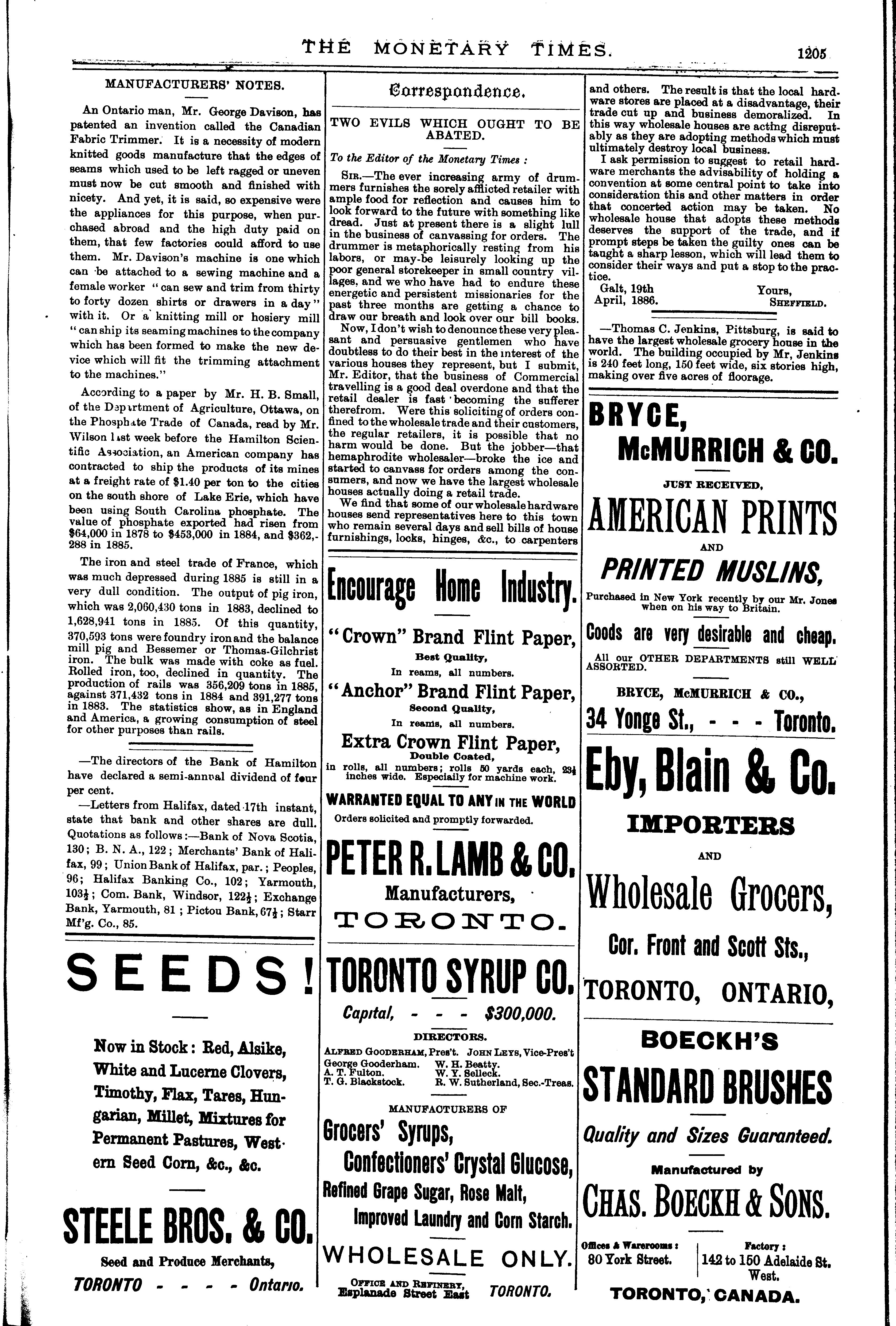 The monetary times, trade review and insurance chronicle : [Vol. 19, no. 43 (Apr. 23, 1886)]