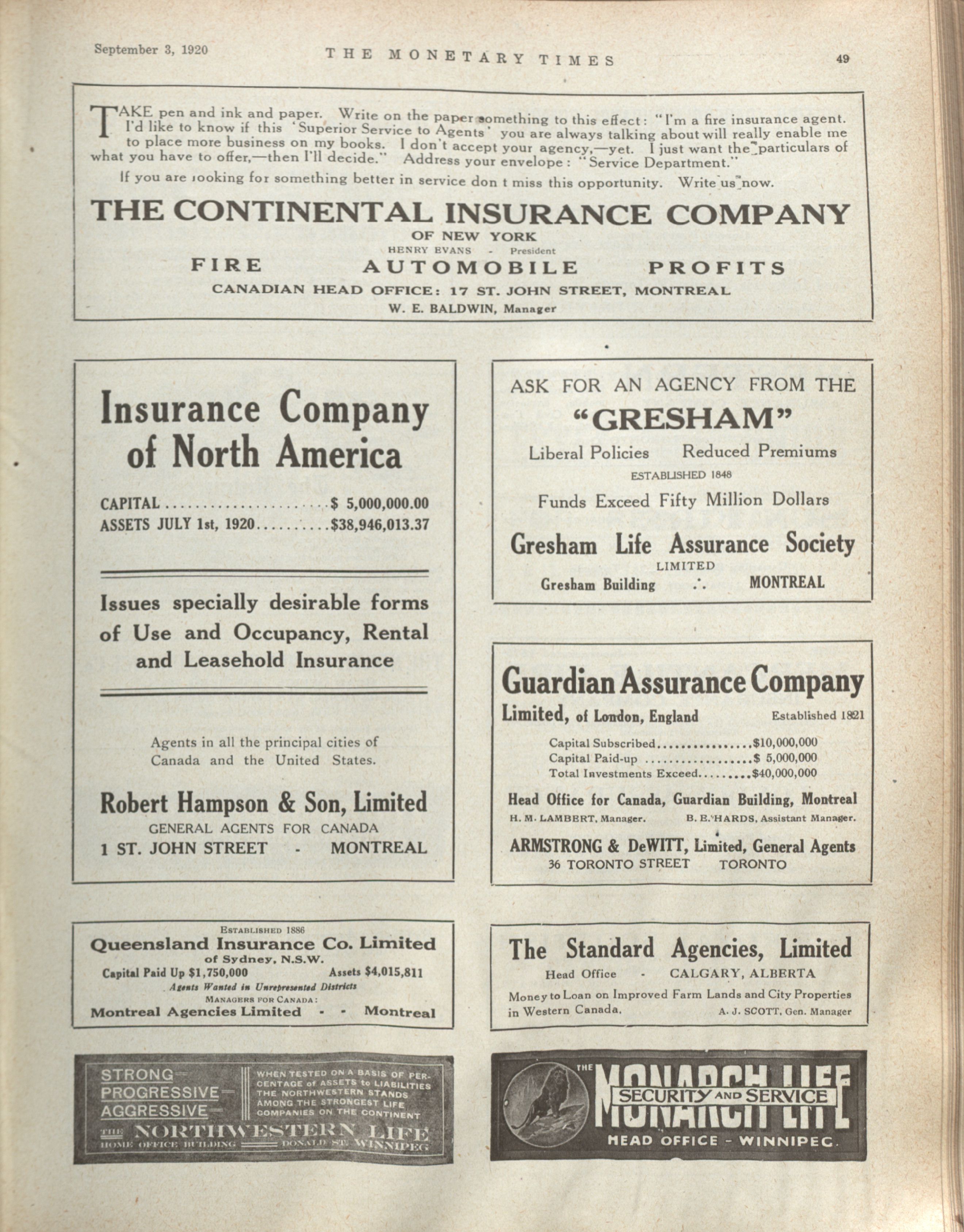 - The Monetary Times, trade review and insurance chronicle. : Volume 65 No. 10 (September 3, 1920)