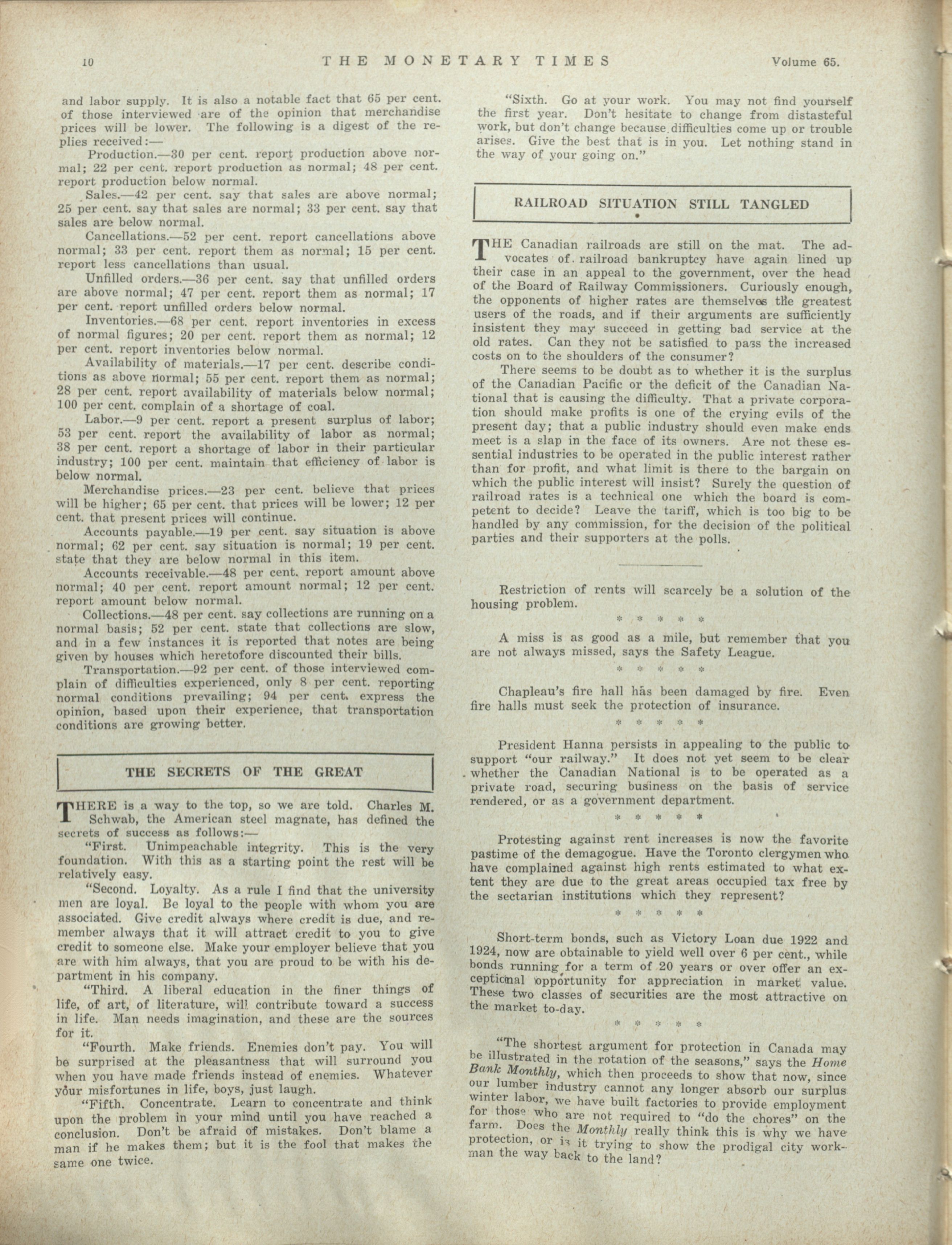 - The Monetary Times, trade review and insurance chronicle. : Volume 65 No. 15 (October 8, 1920)