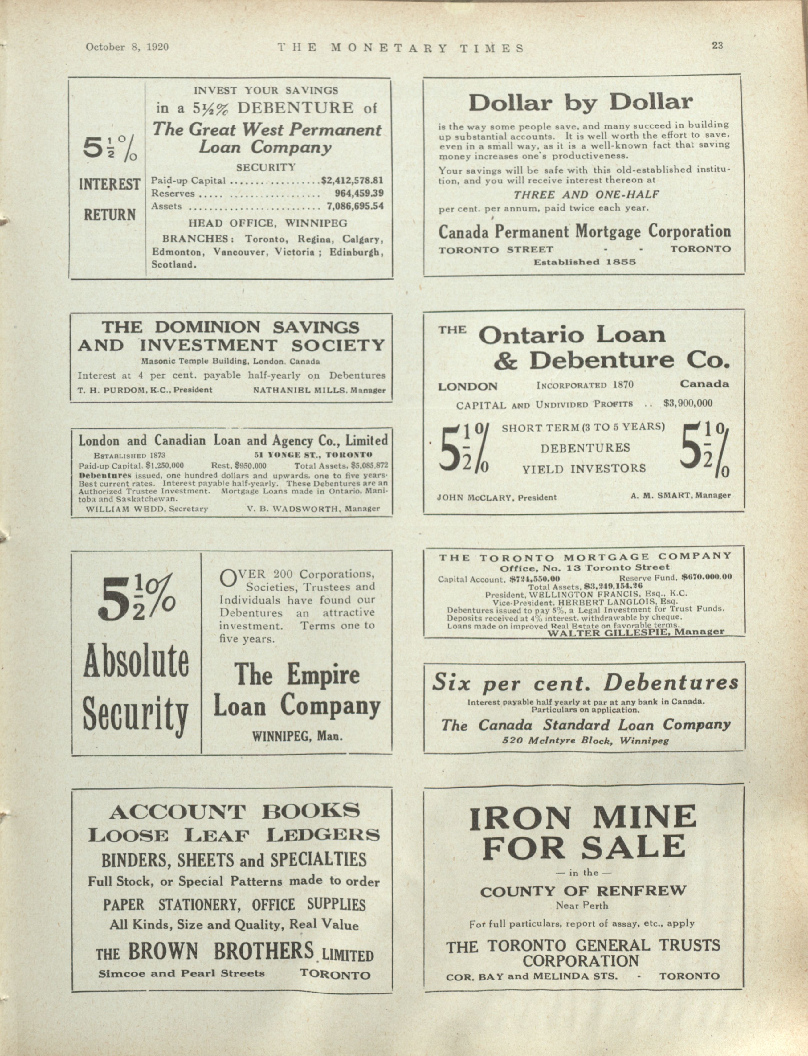 - The Monetary Times, trade review and insurance chronicle. : Volume 65 No. 15 (October 8, 1920)