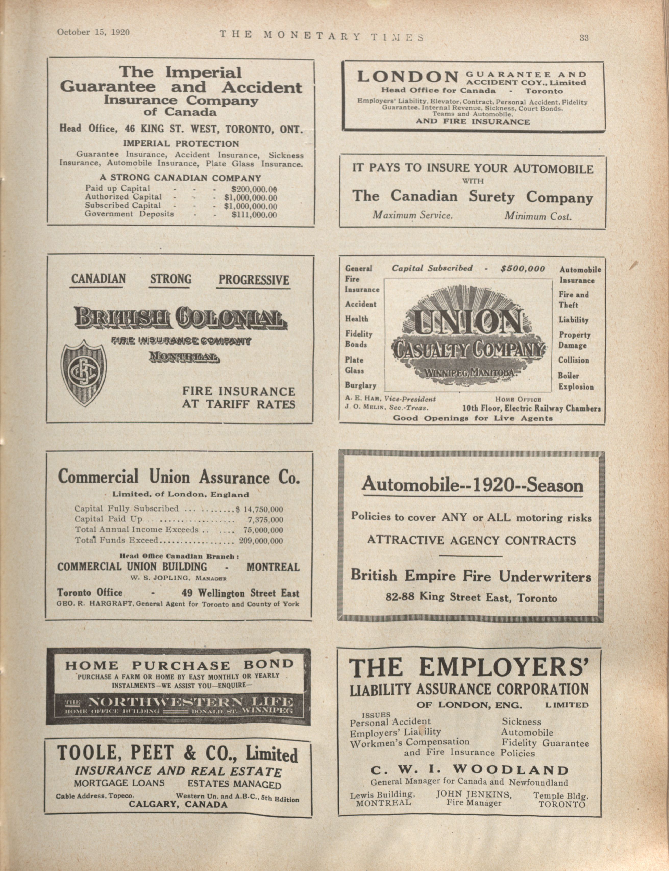 - The Monetary Times, trade review and insurance chronicle. : Volume 65 No. 16 (October 15, 1920)