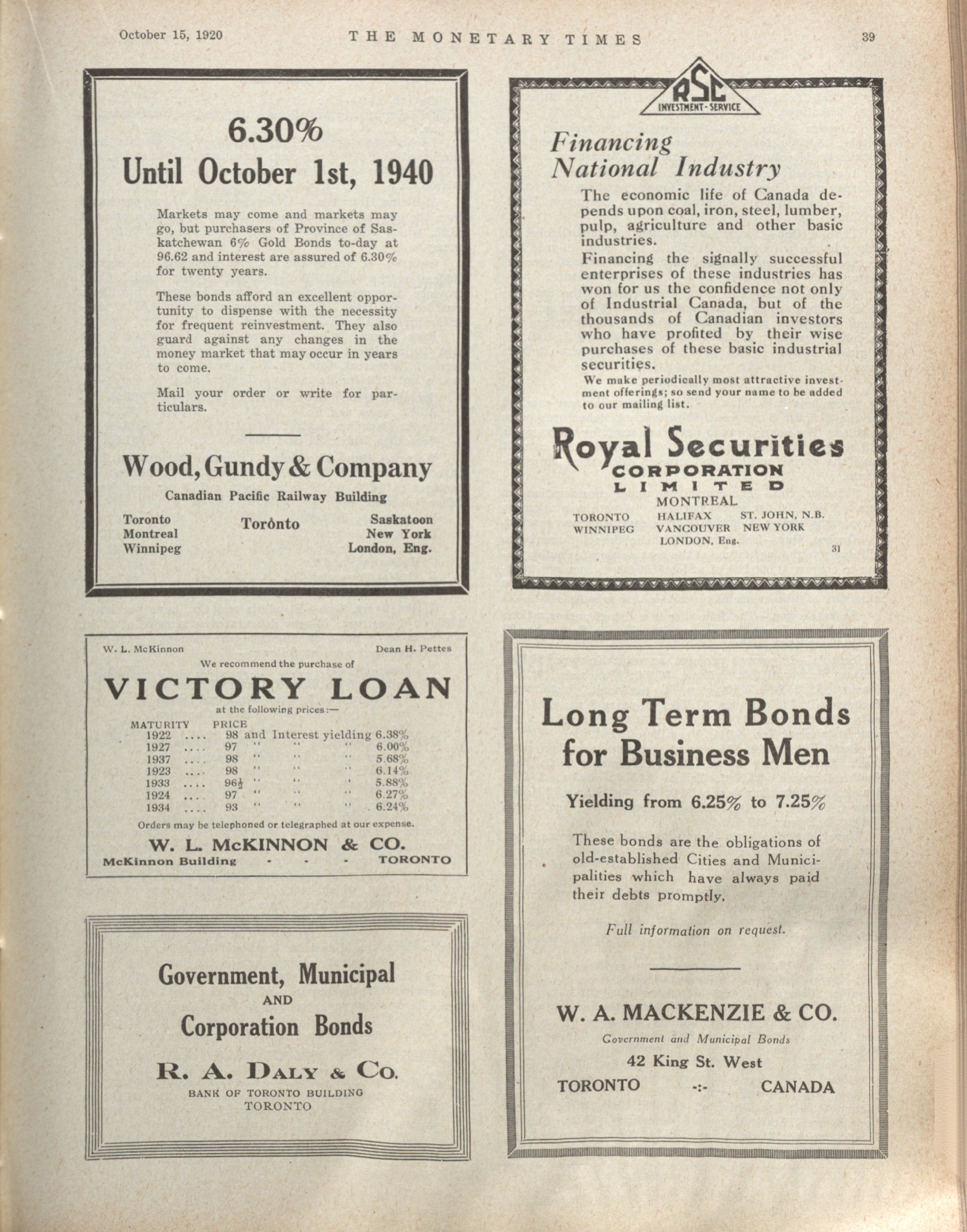 - The Monetary Times, trade review and insurance chronicle. : Volume 65 No. 16 (October 15, 1920)