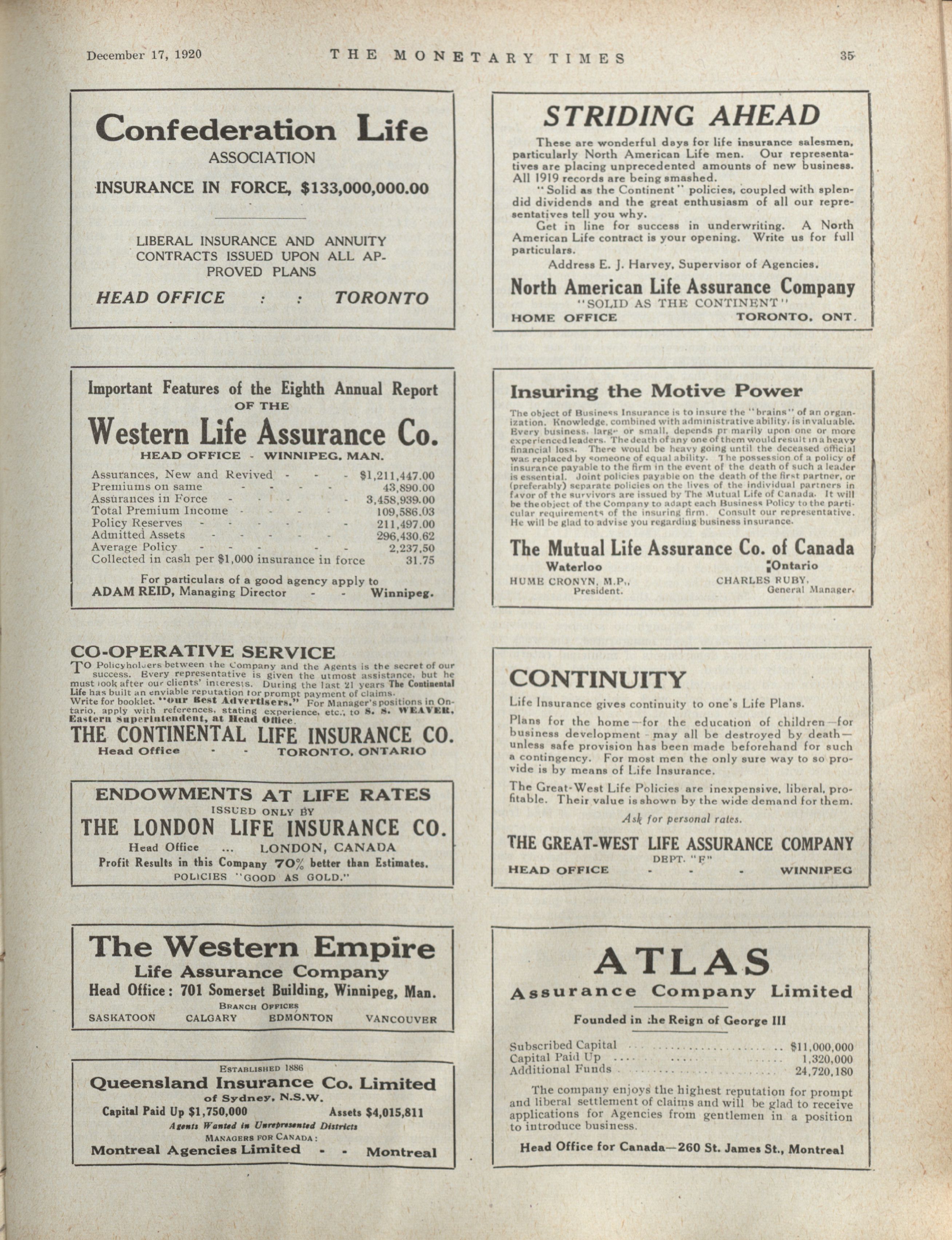 - The Monetary Times, trade review and insurance chronicle. : Volume 65 No. 25 (December 17, 1920)