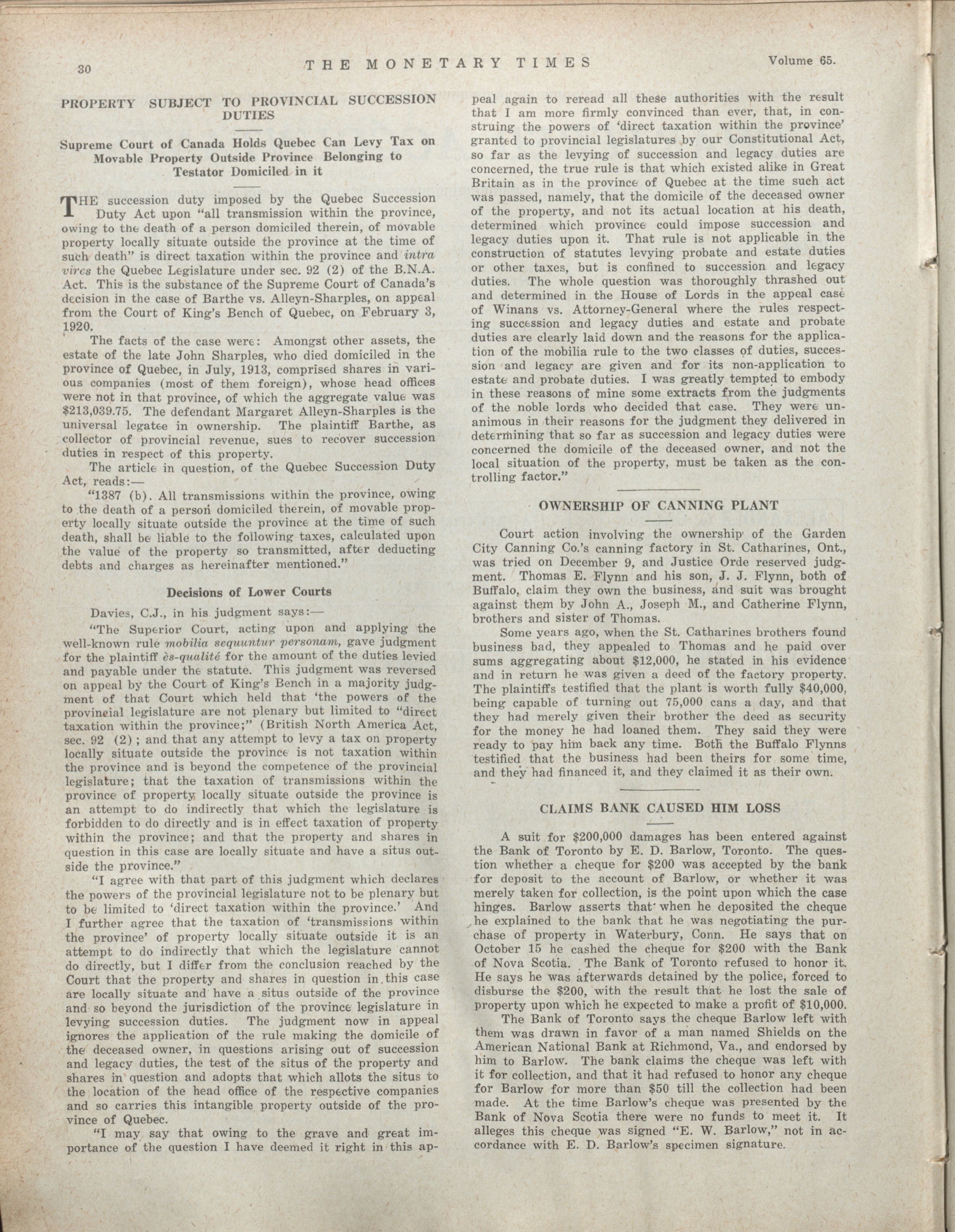 The Monetary Times, trade review and insurance chronicle. : Volume 65 No. 26 (December 24, 1920)