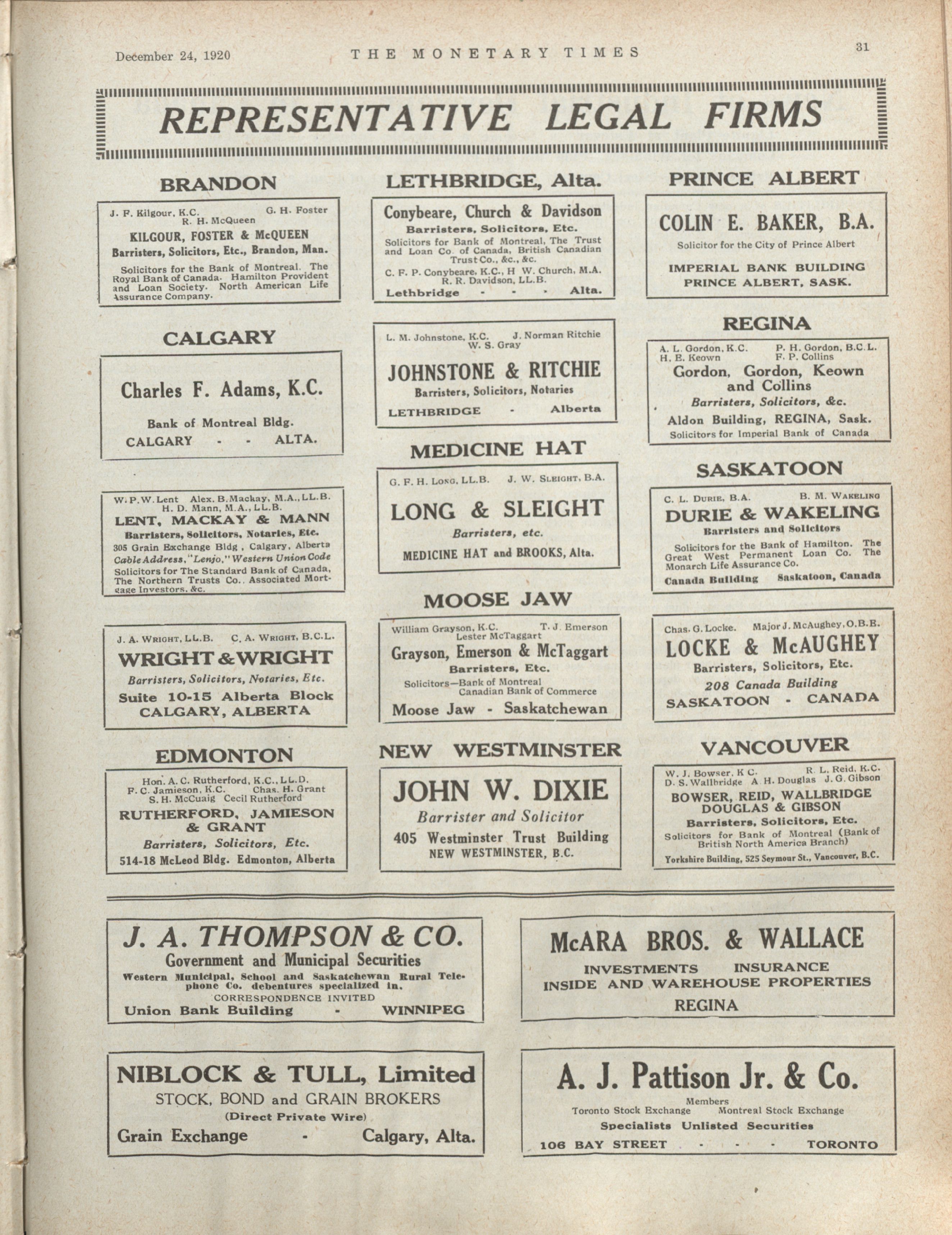 The Monetary Times, trade review and insurance chronicle. : Volume 65 No. 26 (December 24, 1920)