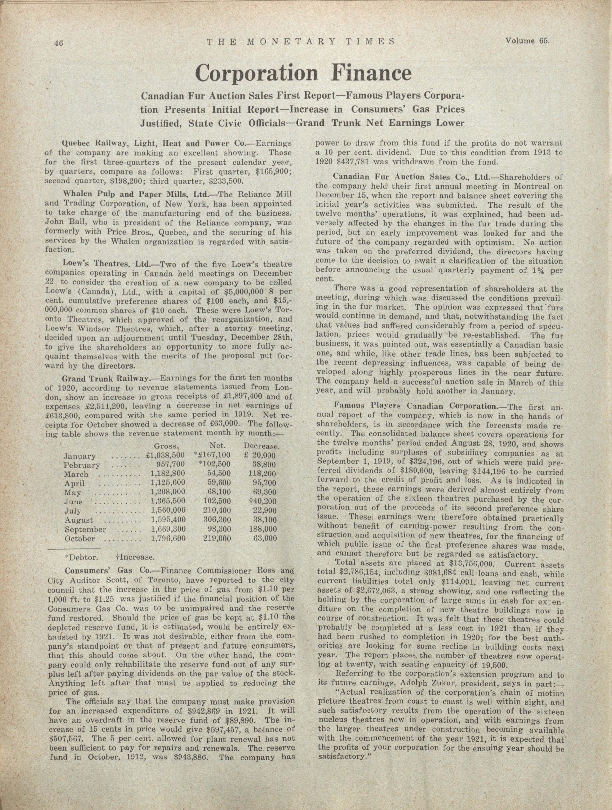 The Monetary Times, trade review and insurance chronicle. : Volume 65 No. 26 (December 24, 1920)