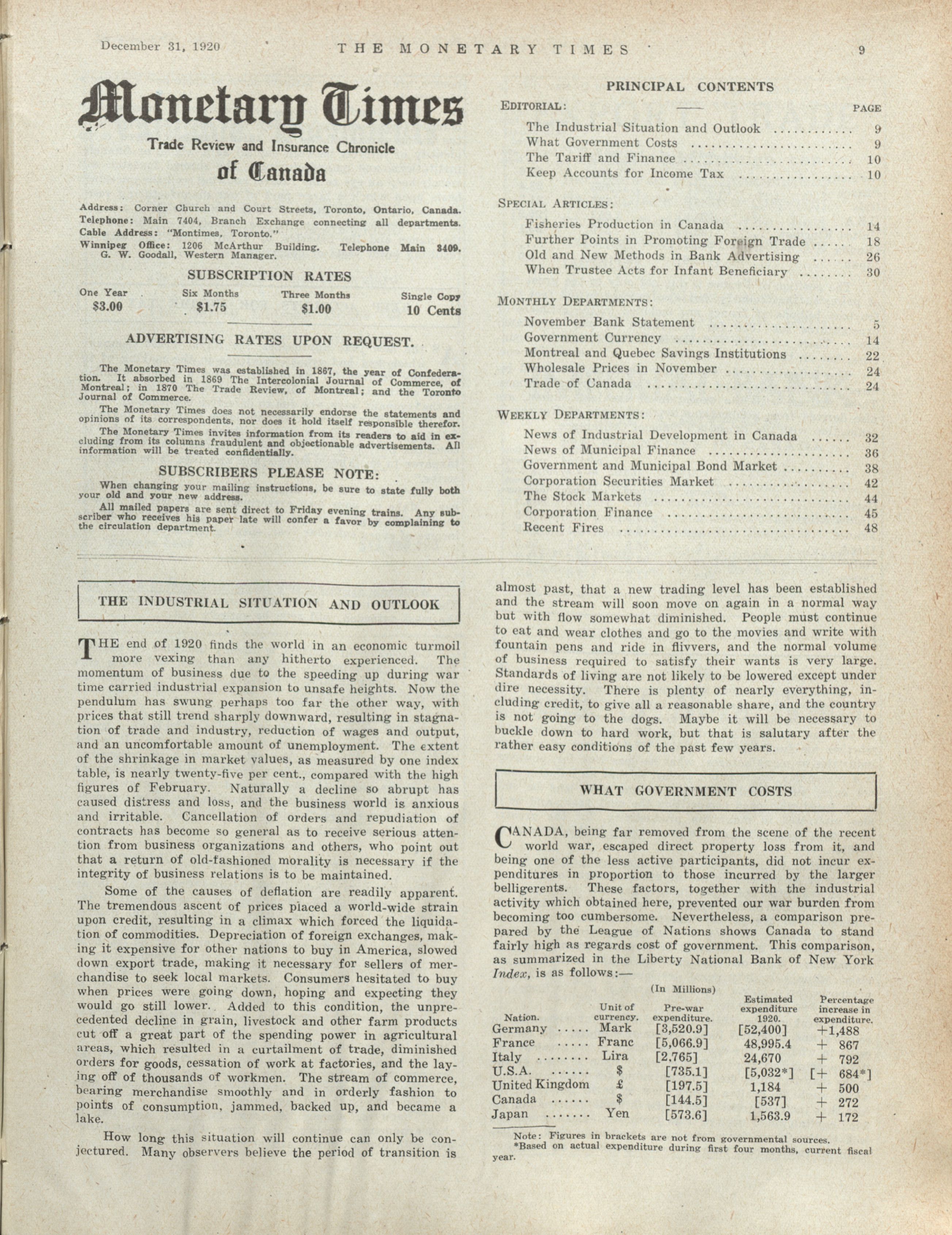 - The Monetary Times, trade review and insurance chronicle. : Volume 65 No. 27 (December 31, 1920)