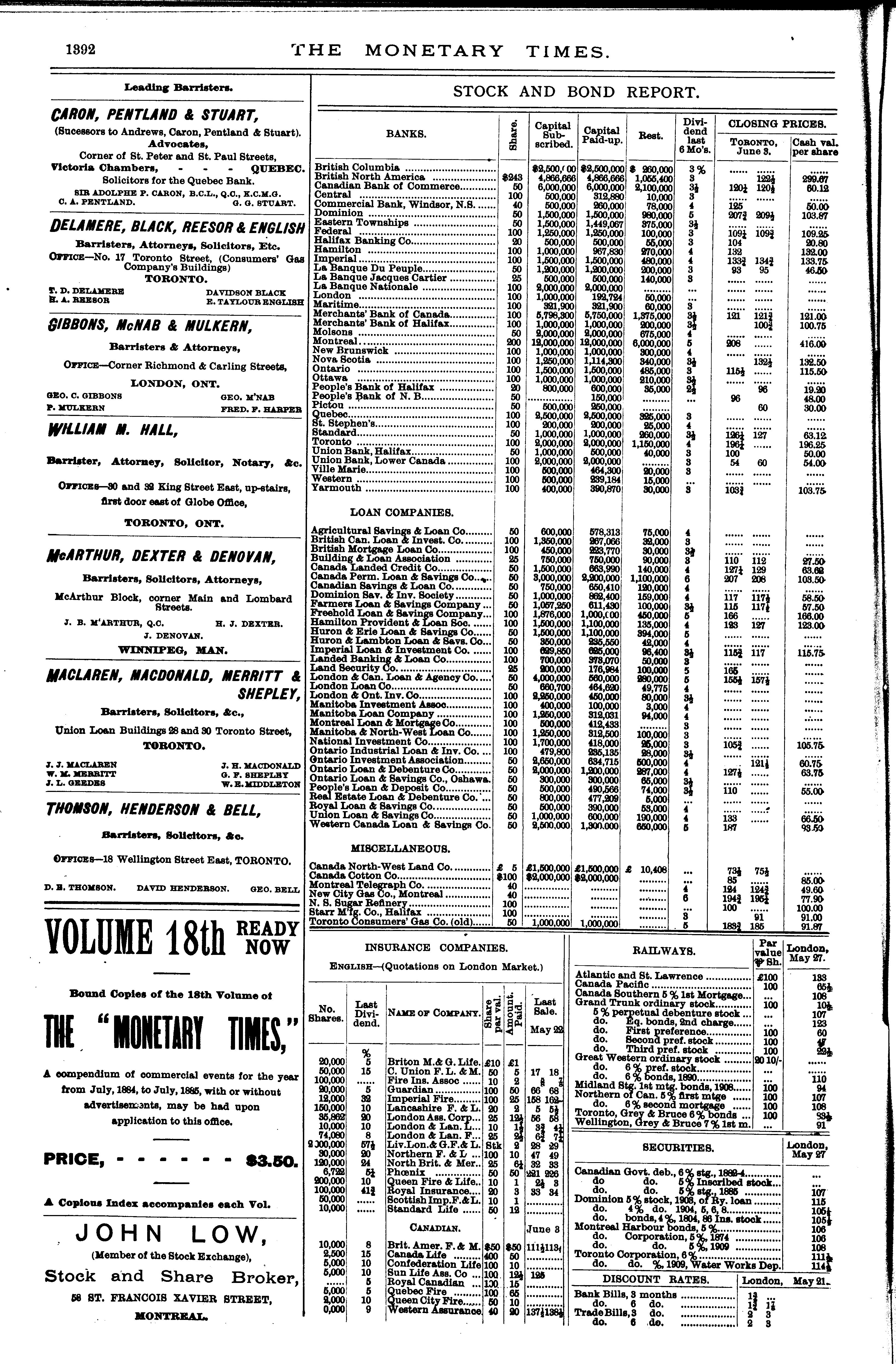 The monetary times, trade review and insurance chronicle : [Vol. 19, no. 49 (June 4, 1886)]